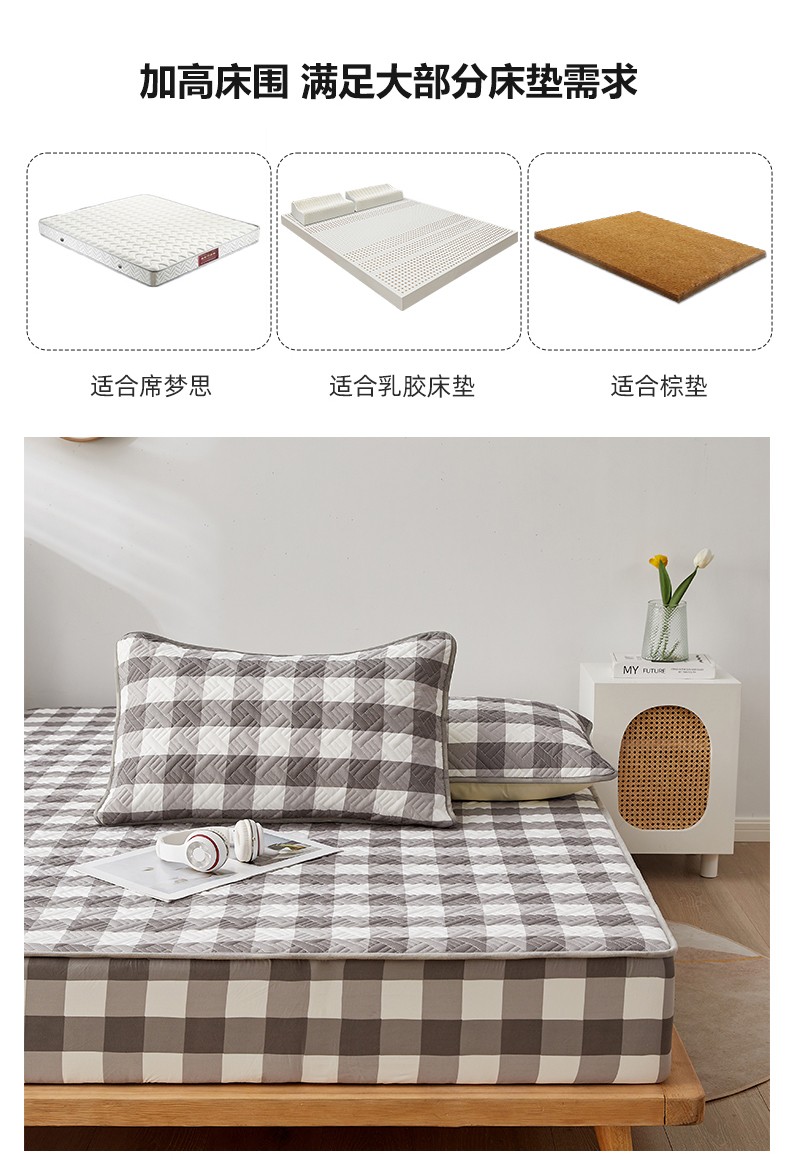 暖季 2025新款无印风水洗棉-玉米纤维夹棉床笠 无印风水洗棉-灰中格