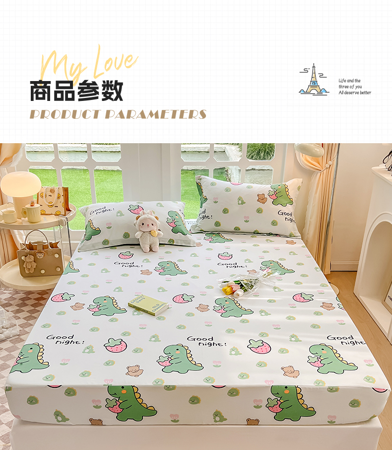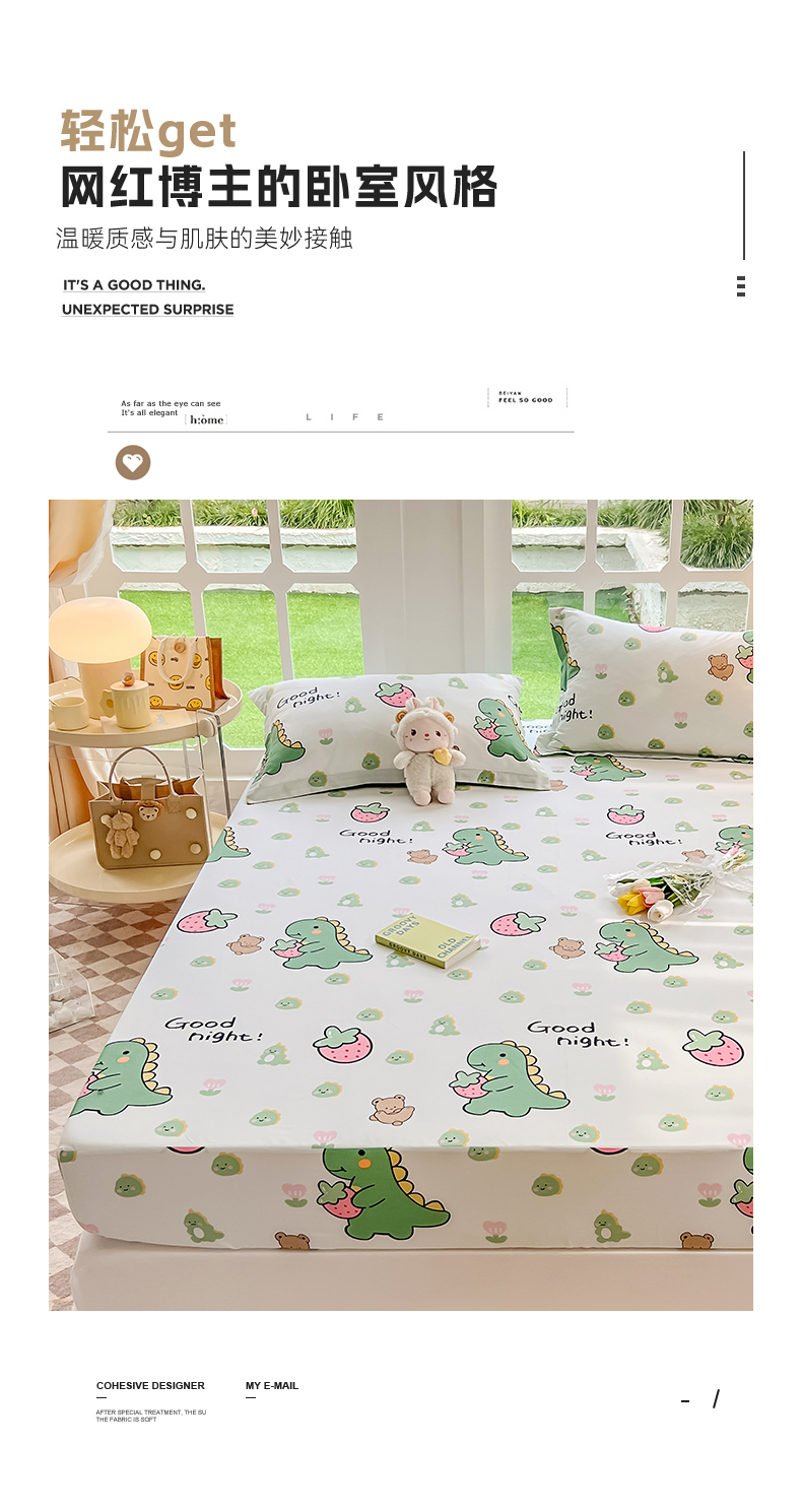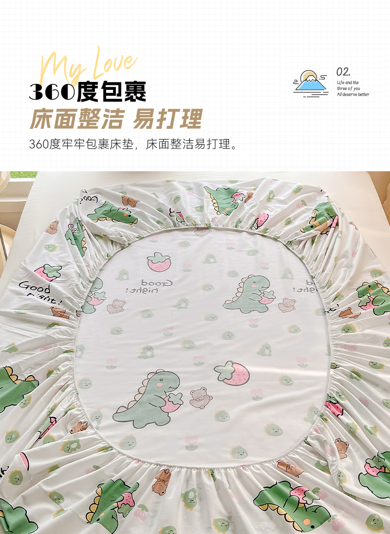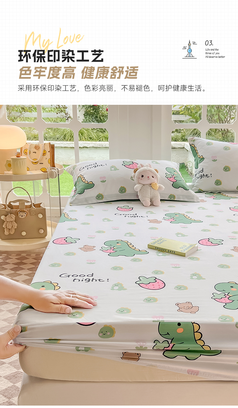 绵庭家纺 2023新款12868系列全棉小清新印花单床笠 恐龙贝贝