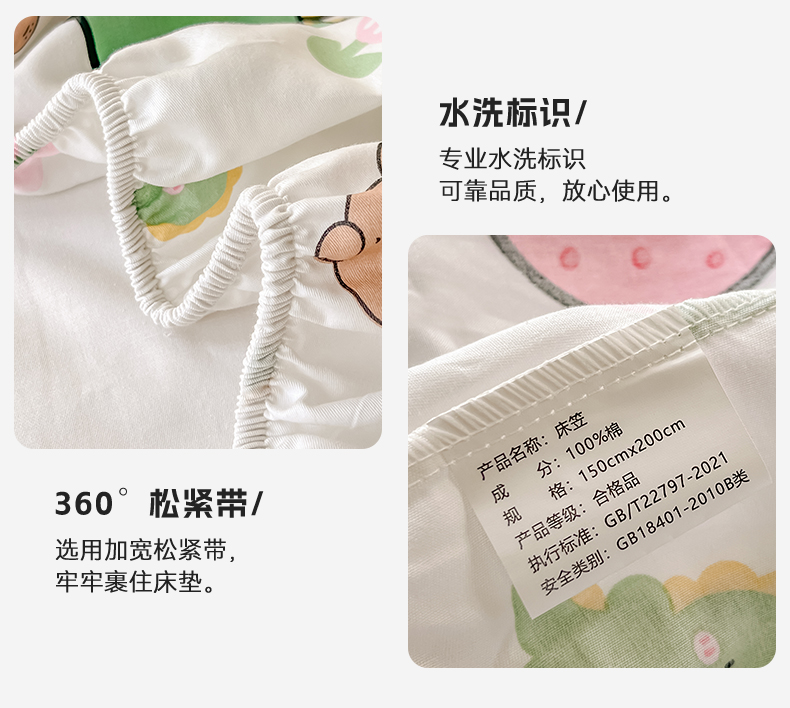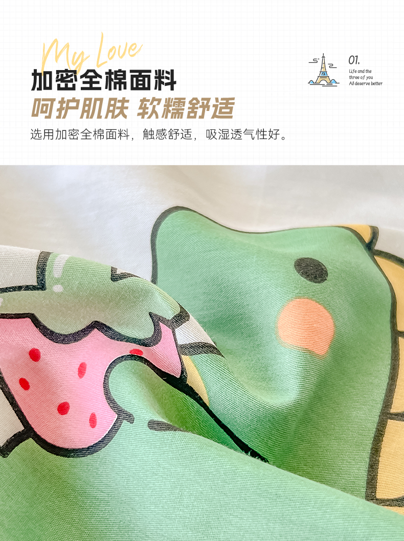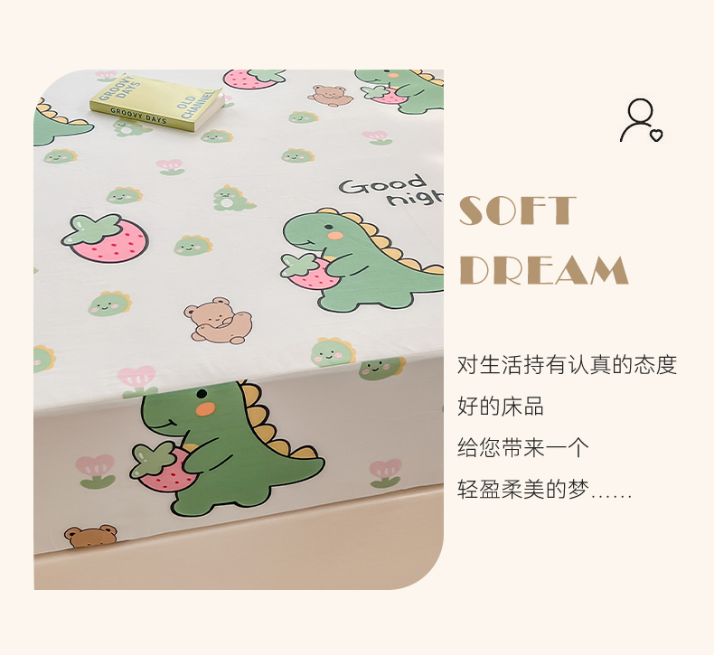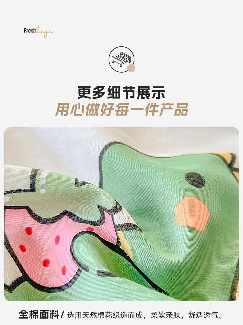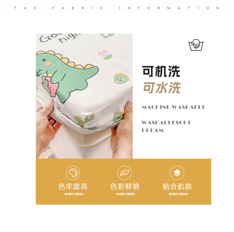 绵庭家纺 2023新款12868系列全棉小清新印花单床笠 恐龙贝贝