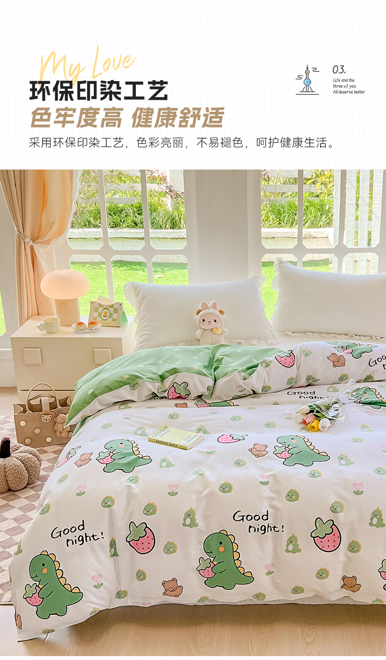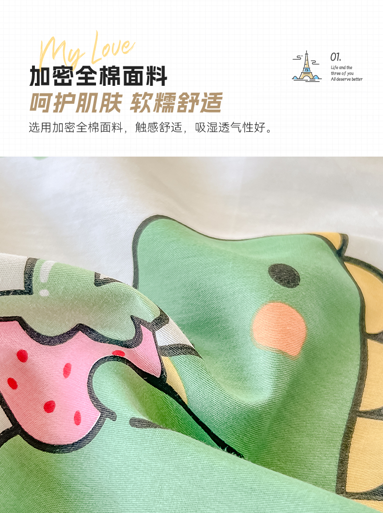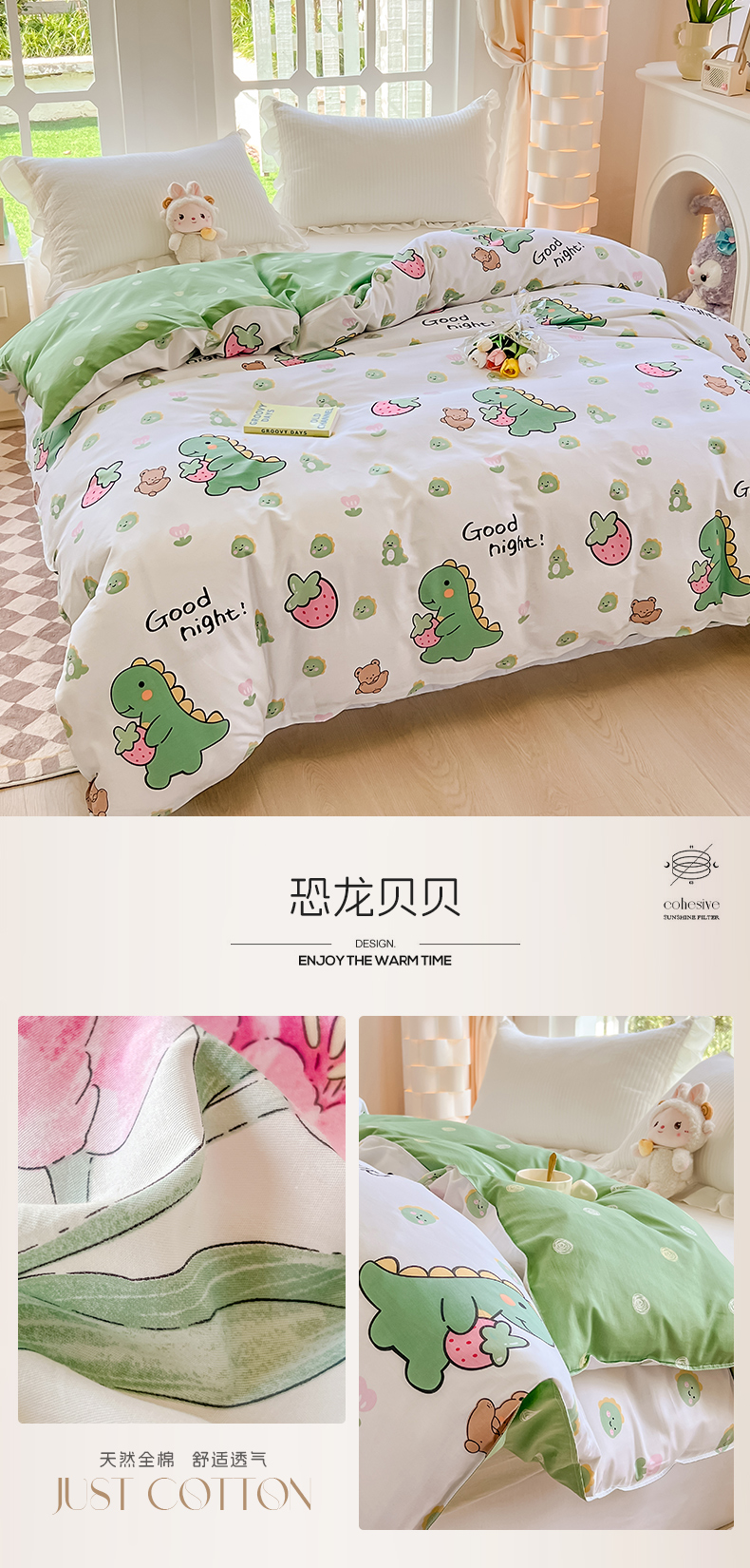 绵庭家纺 2023新款12868系列全棉小清新印花单被套 恐龙贝贝
