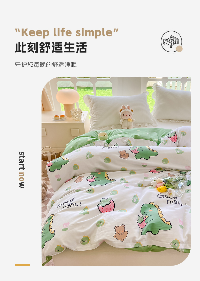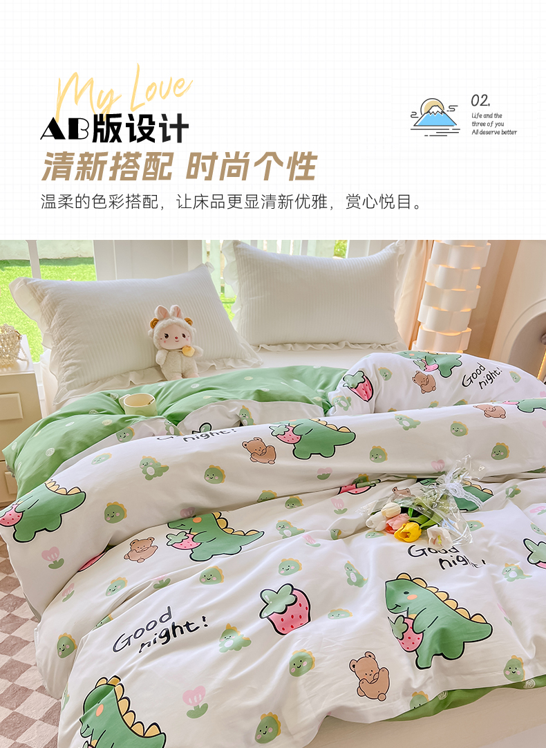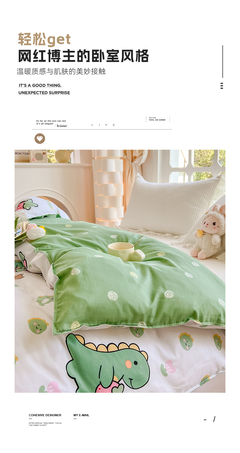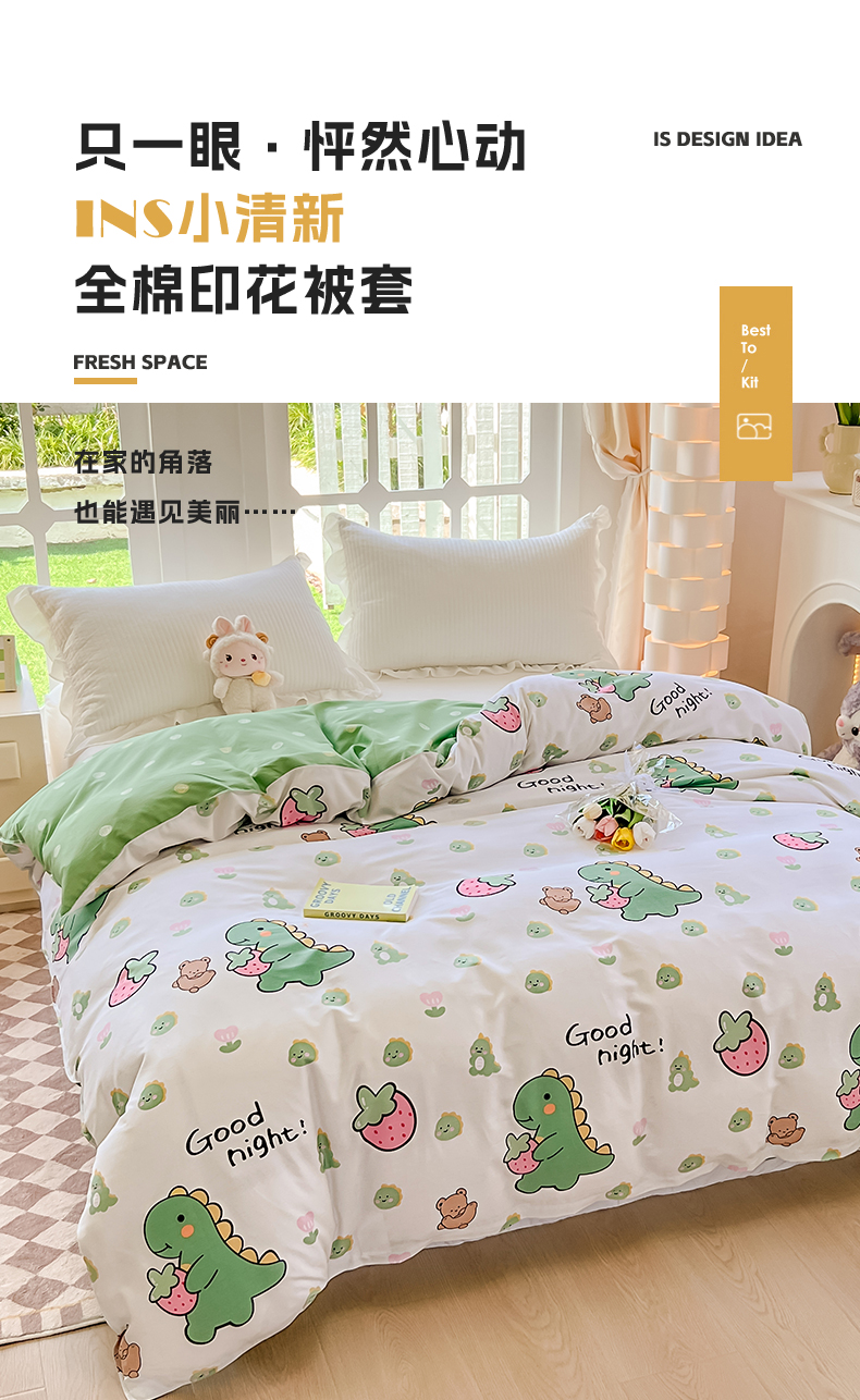 绵庭家纺 2023新款12868系列全棉小清新印花单被套 恐龙贝贝