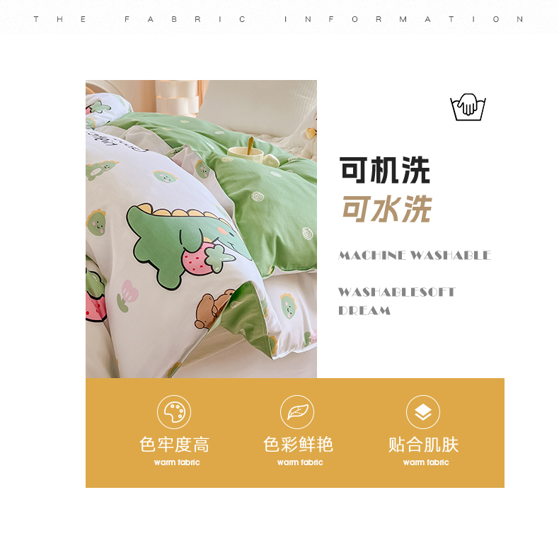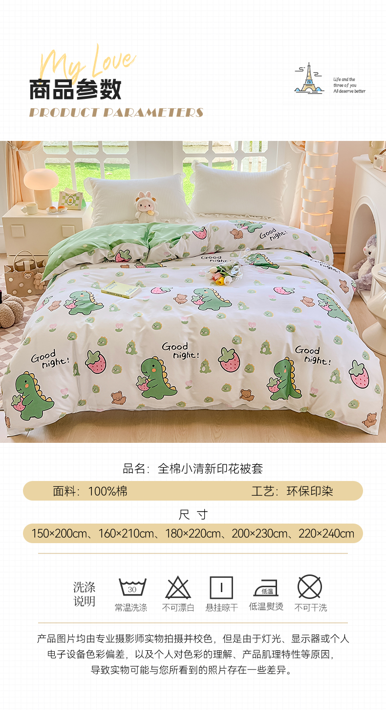 商品名称:绵庭家纺 2023新款12868系列全棉小清新印花单被套 恐龙贝贝