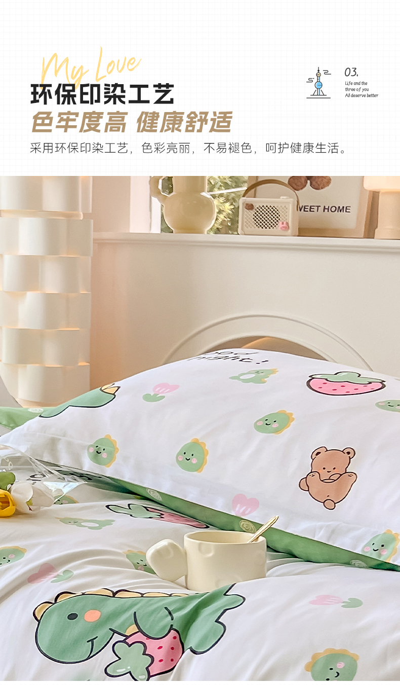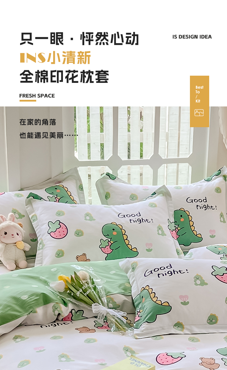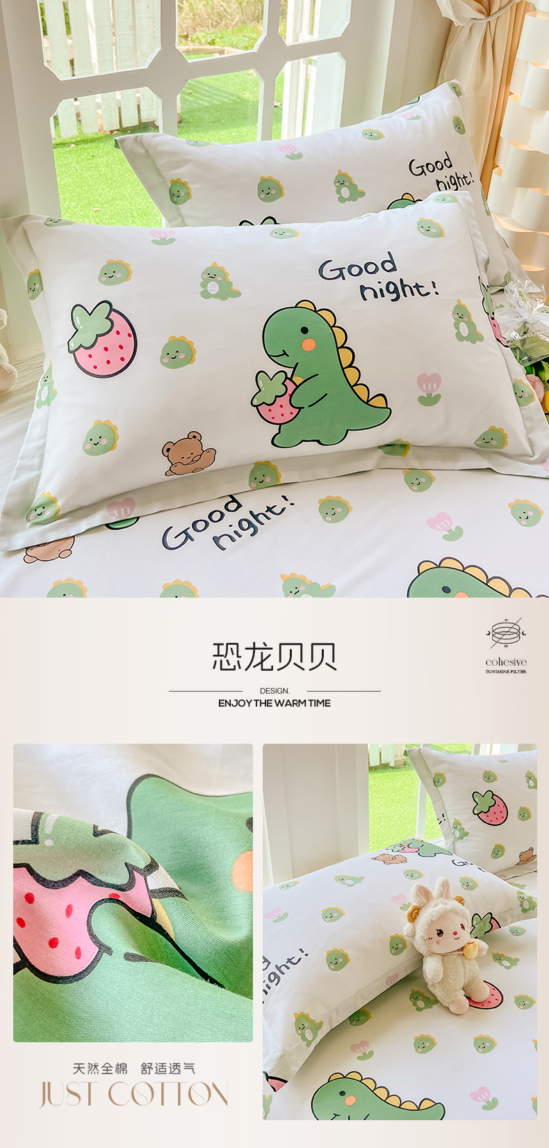 绵庭家纺 2023新款12868系列全棉小清新印花单枕套 恐龙贝贝