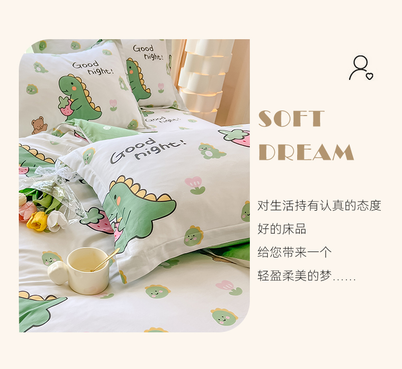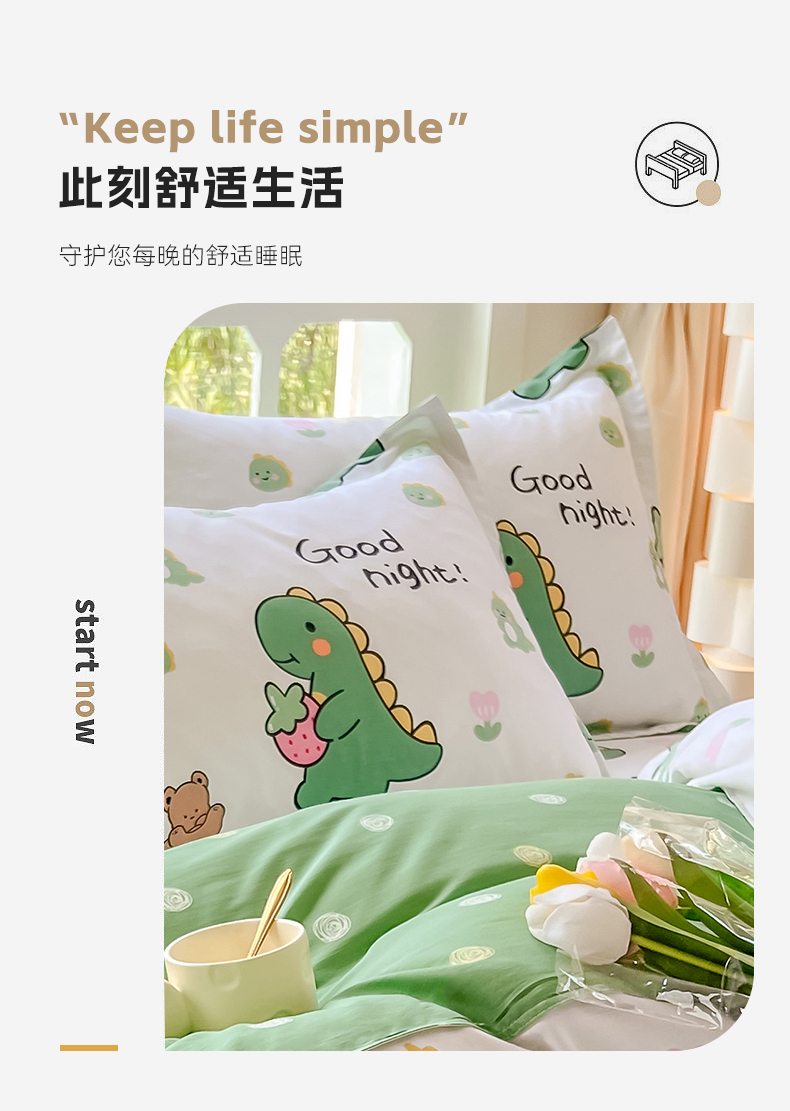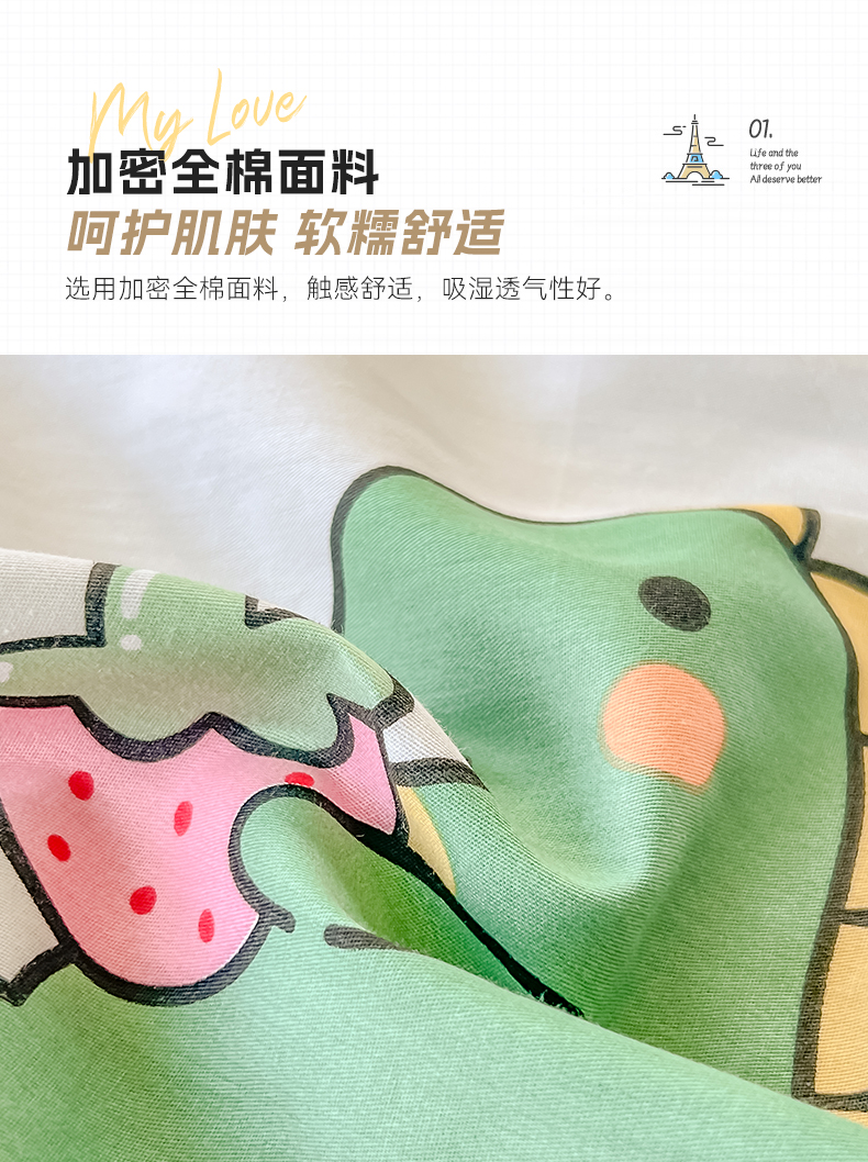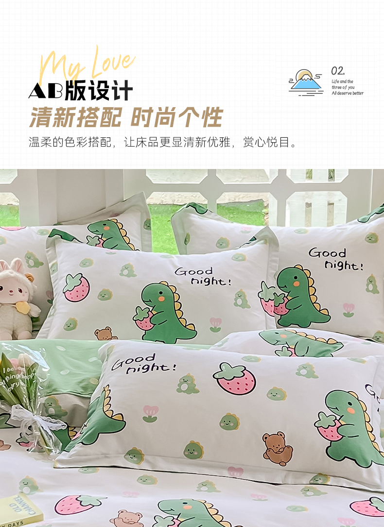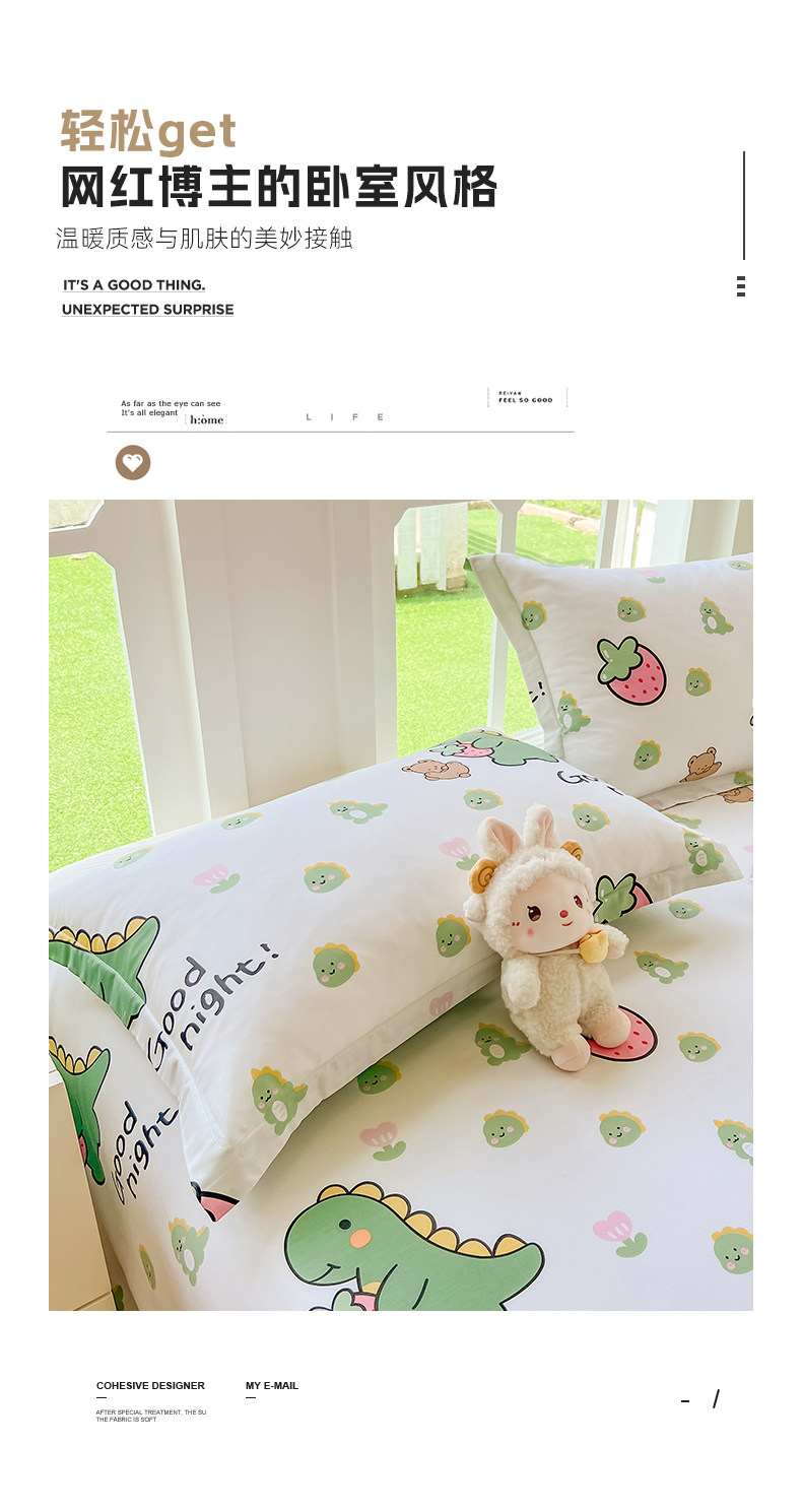 绵庭家纺 2023新款12868系列全棉小清新印花单枕套 恐龙贝贝