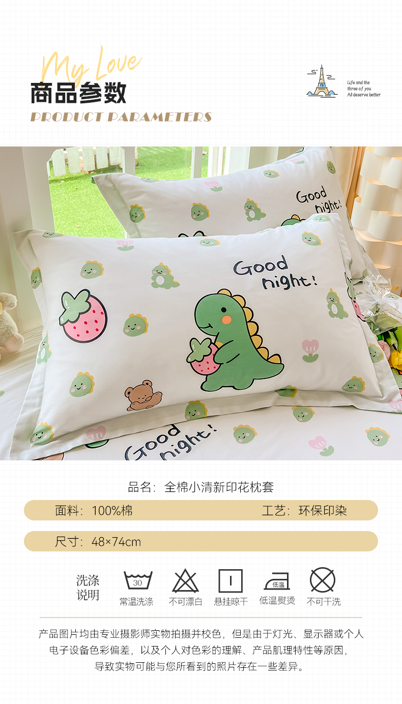 商品名称:绵庭家纺 2023新款12868系列全棉小清新印花单枕套 恐龙贝贝