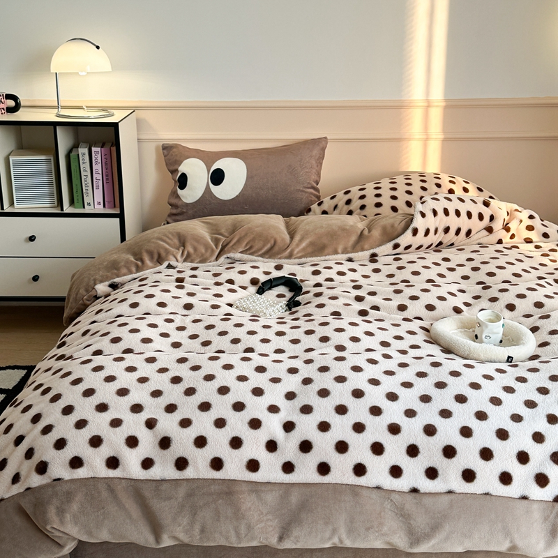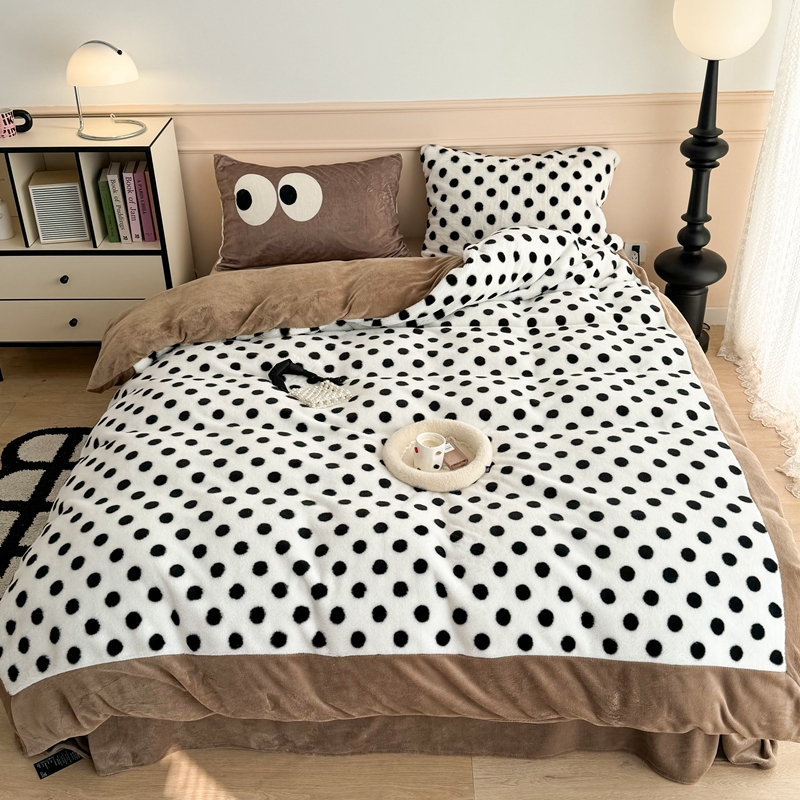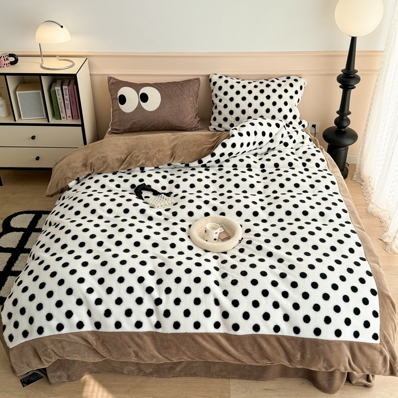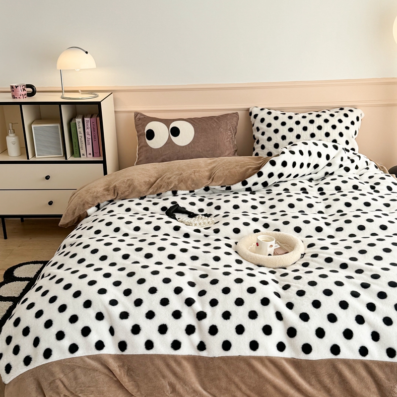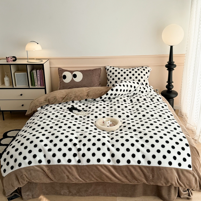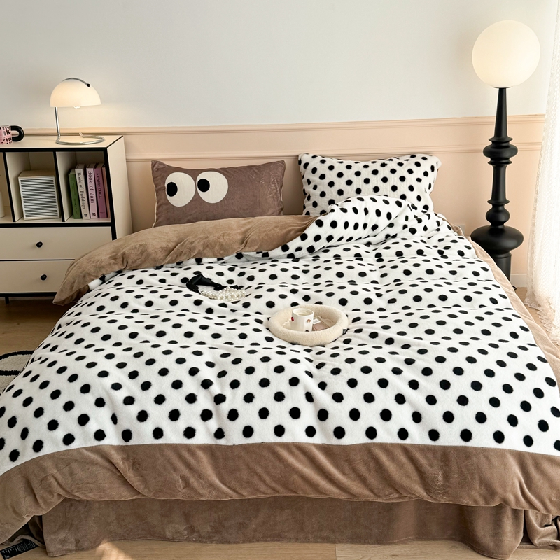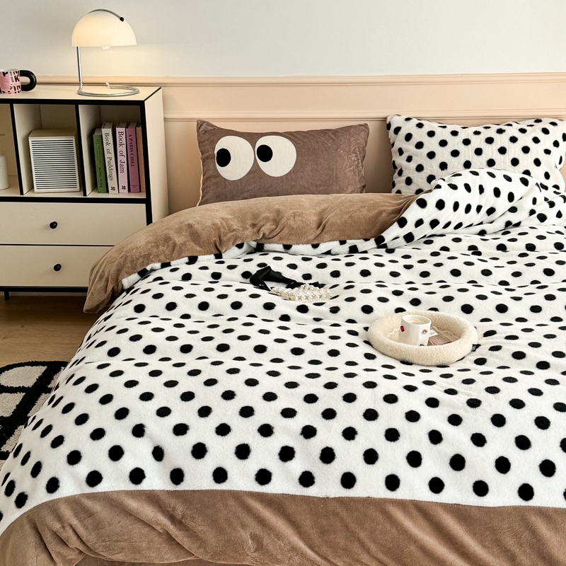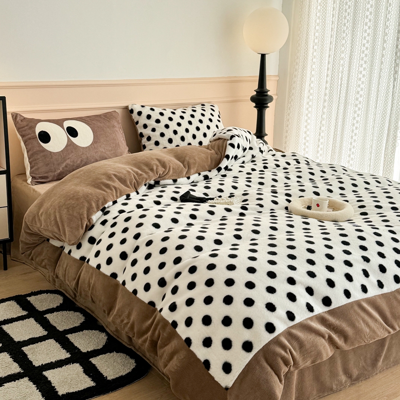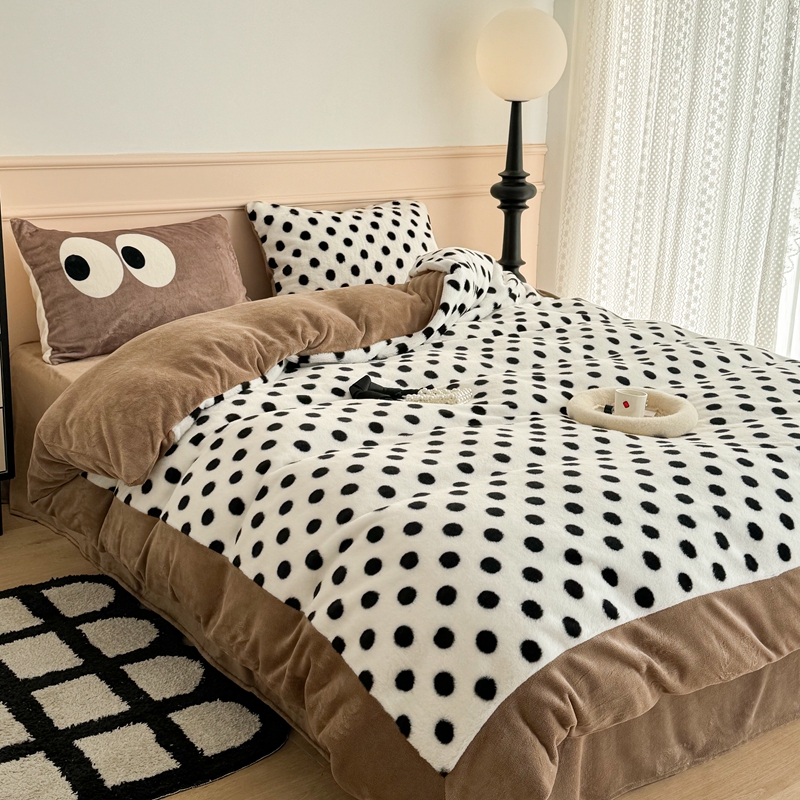 (总)昔可家纺 2023新款波点兔兔绒拼接牛奶绒四件套