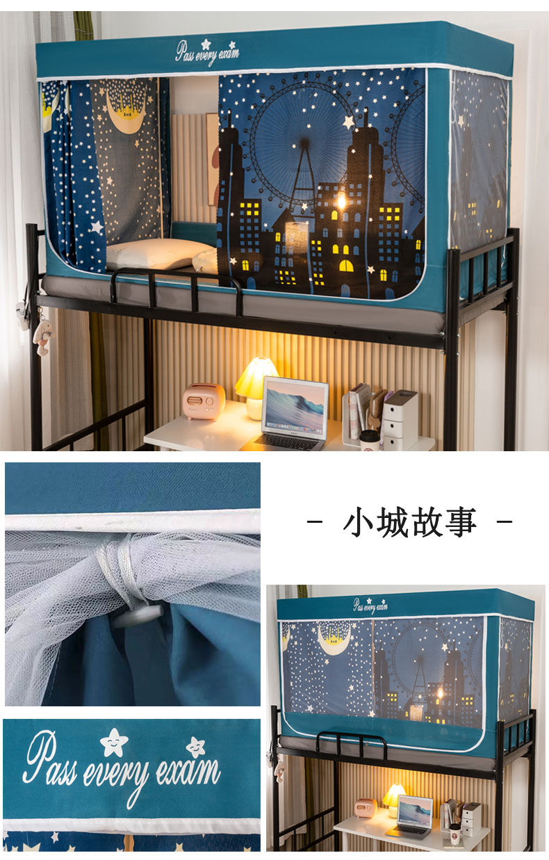 学生宿舍蚊帐一体上下铺蚊帐遮光防尘床帘0.9米三开门拉链蚊帐 小城故事-遮光防蚊