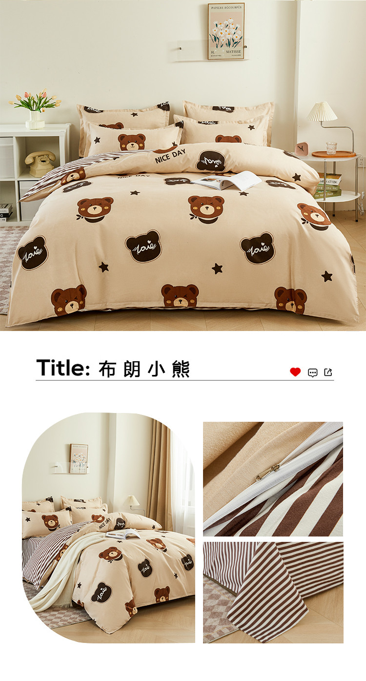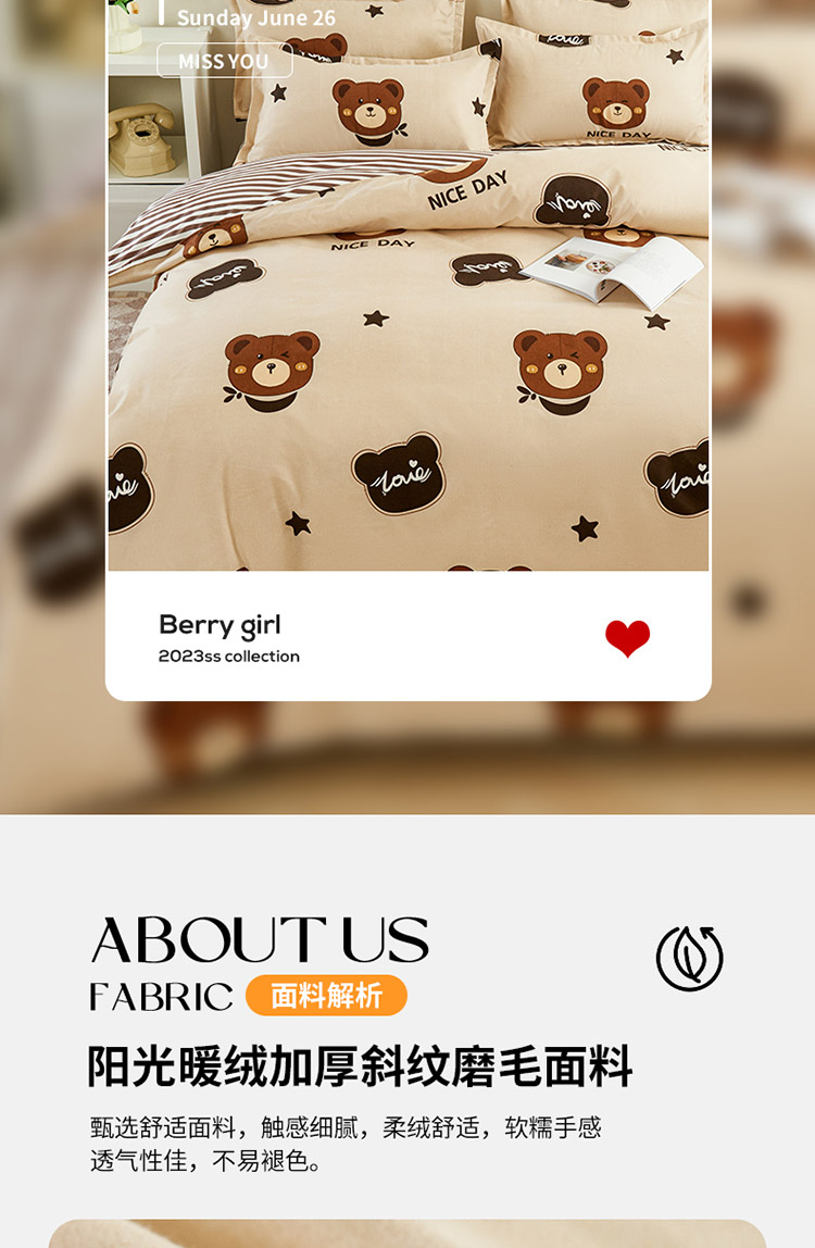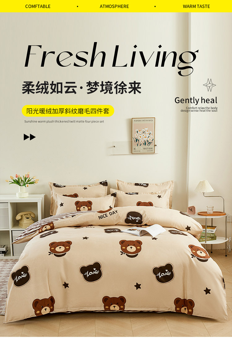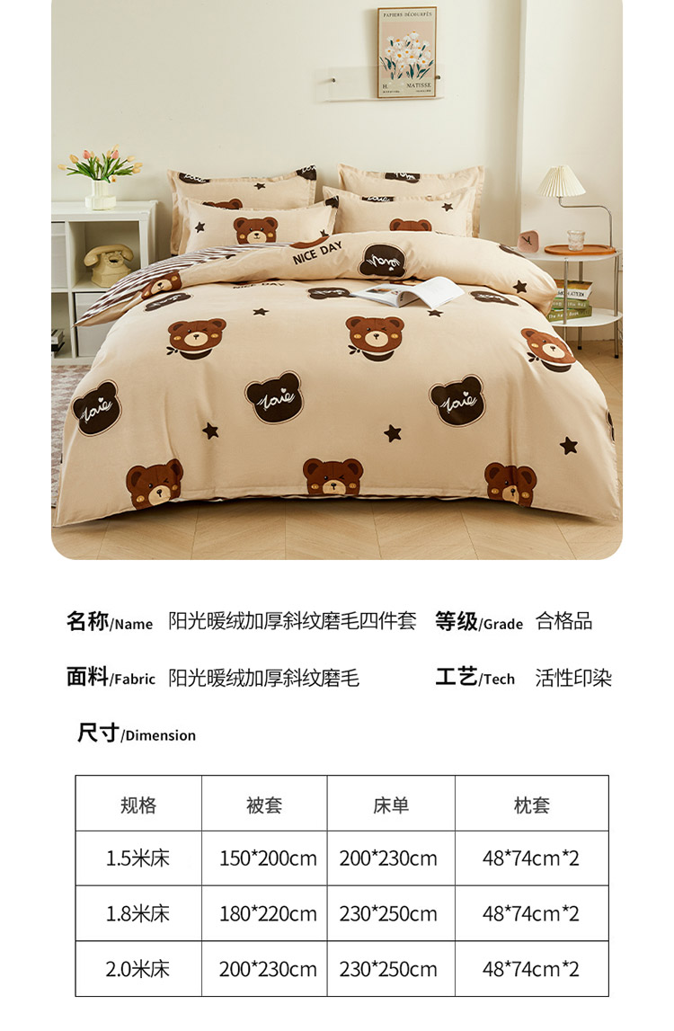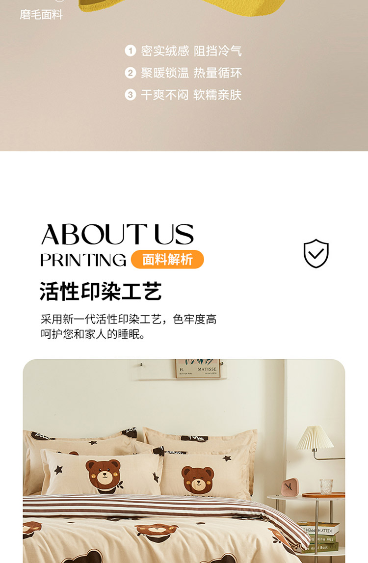 商品名称:爱诗诺 2025新品加厚生态棉磨毛四件套高克重植物羊绒单被套布朗小熊