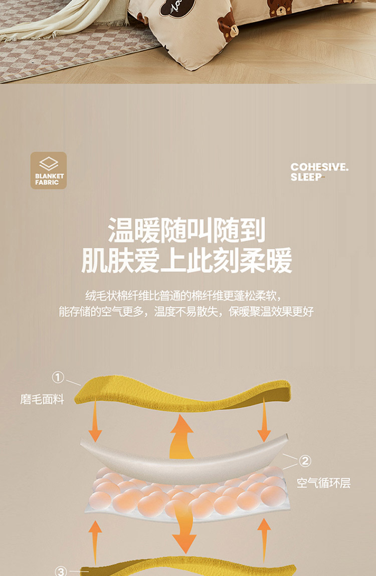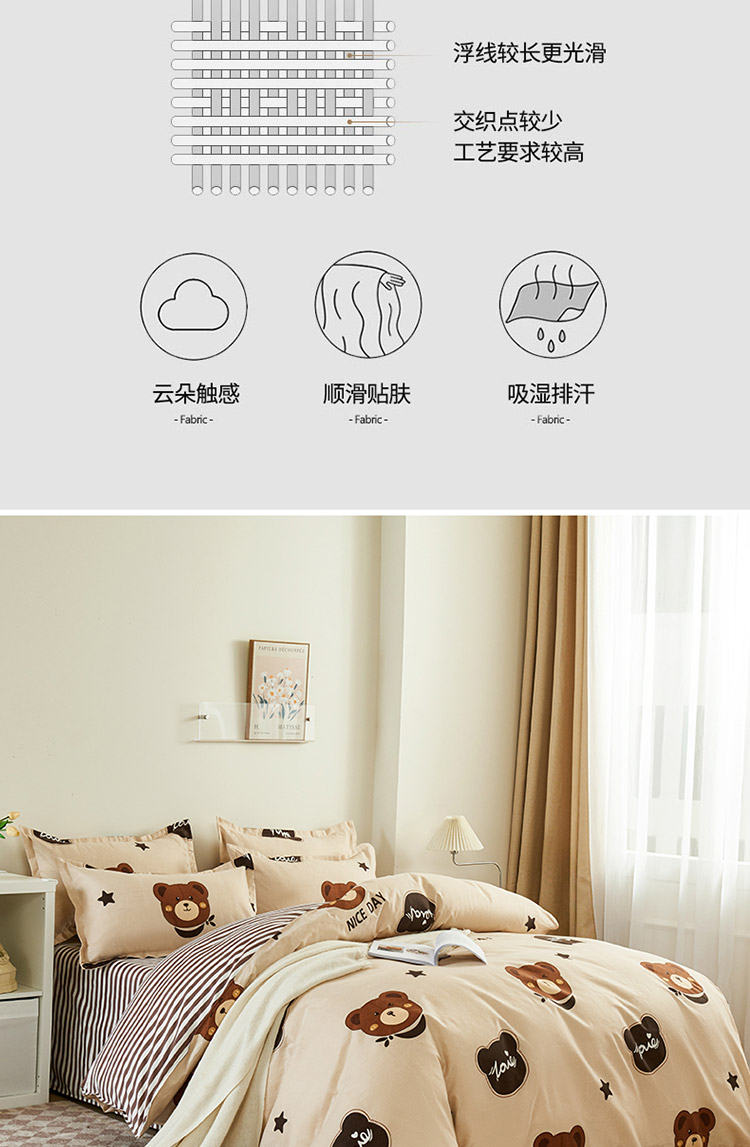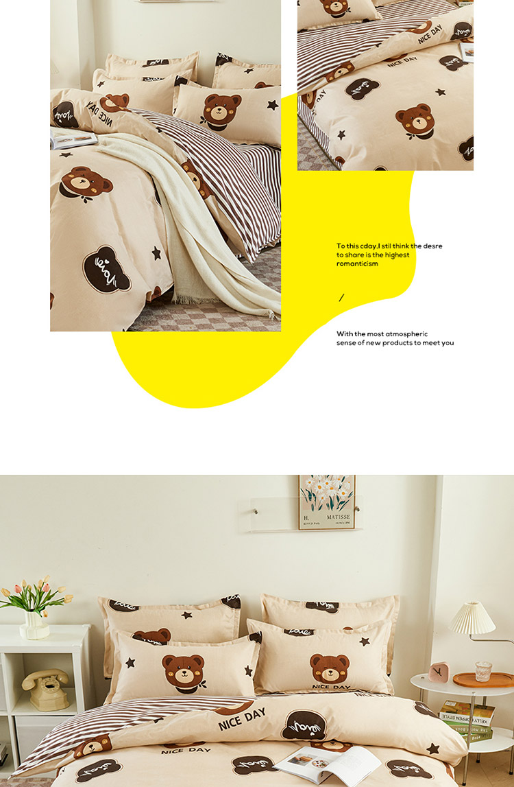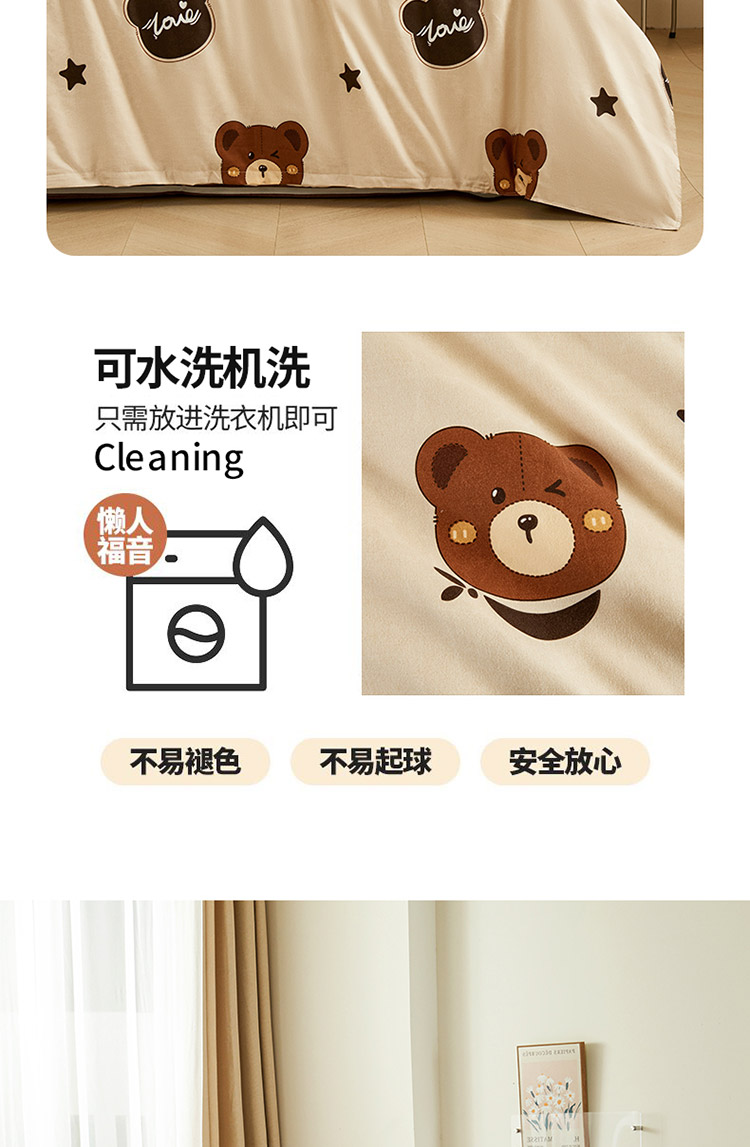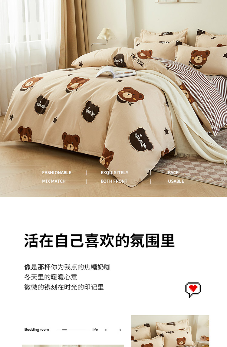 商品名称:爱诗诺 2025新品加厚生态棉磨毛四件套高克重植物羊绒单被套布朗小熊