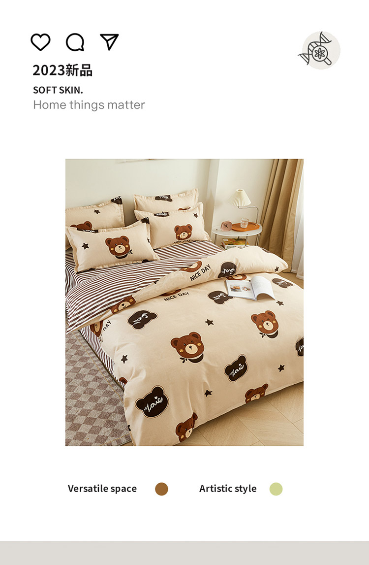爱诗诺 2025新品加厚生态棉磨毛四件套高克重植物羊绒单被套布朗小熊