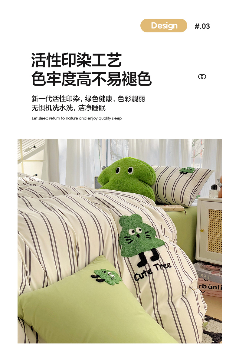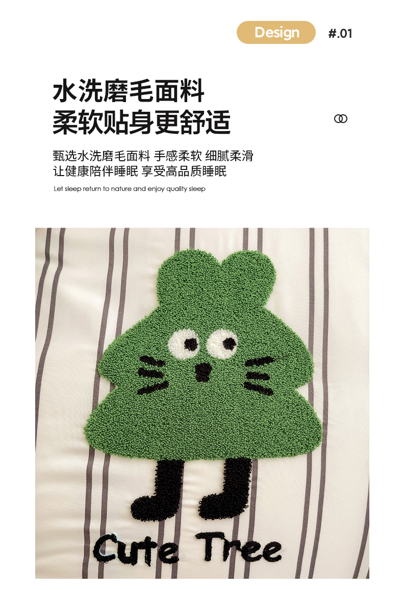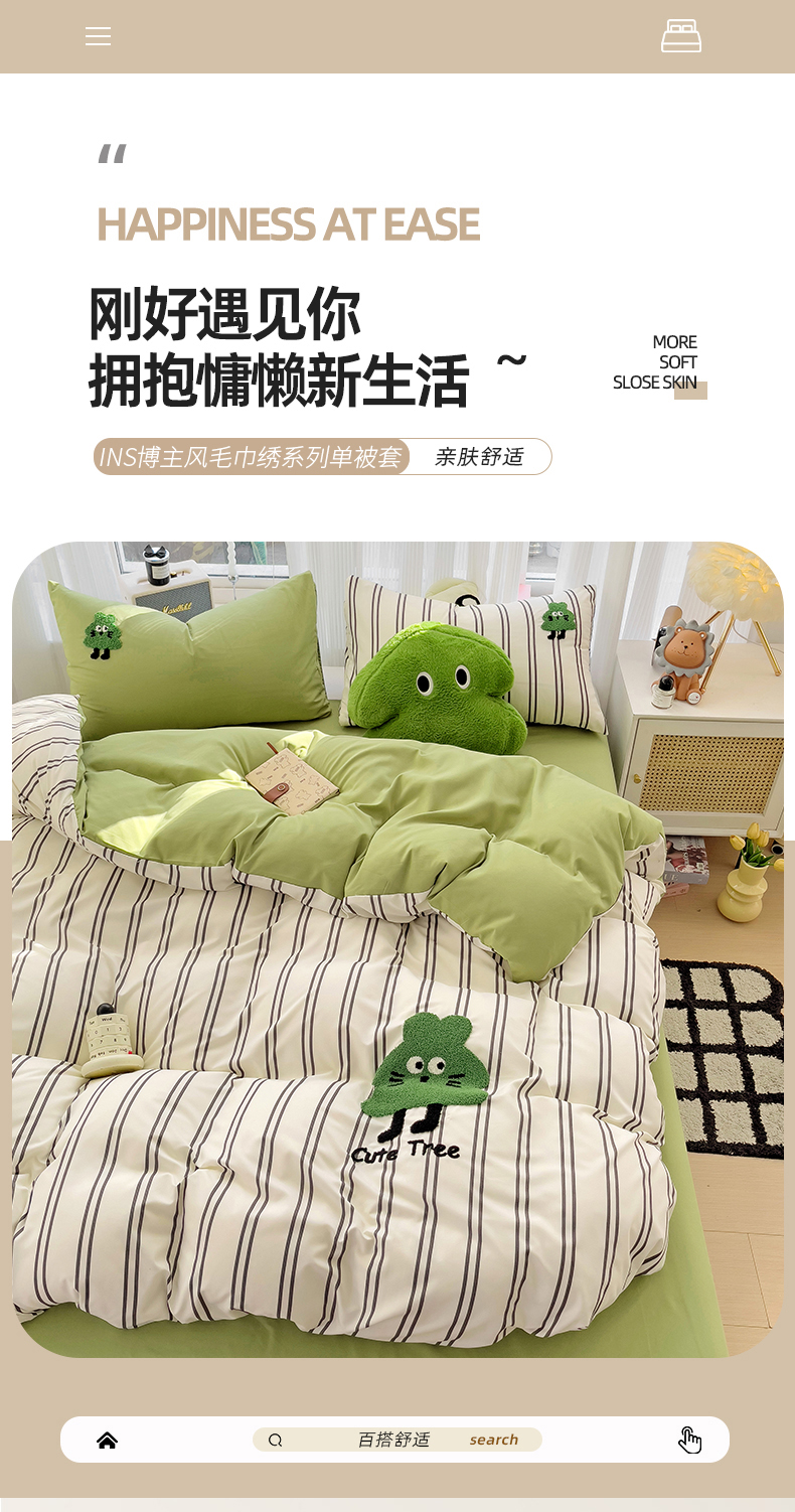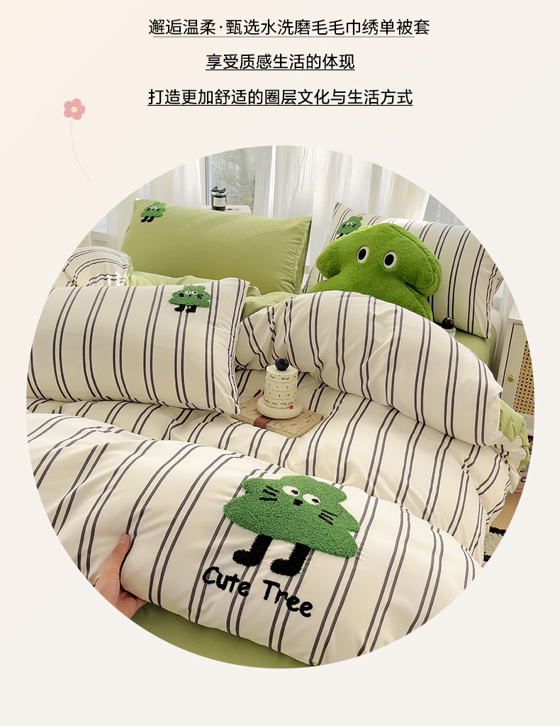 商品名称:尤米 2024新款ins博主风系列毛巾绣系列单被套 发财树-条纹