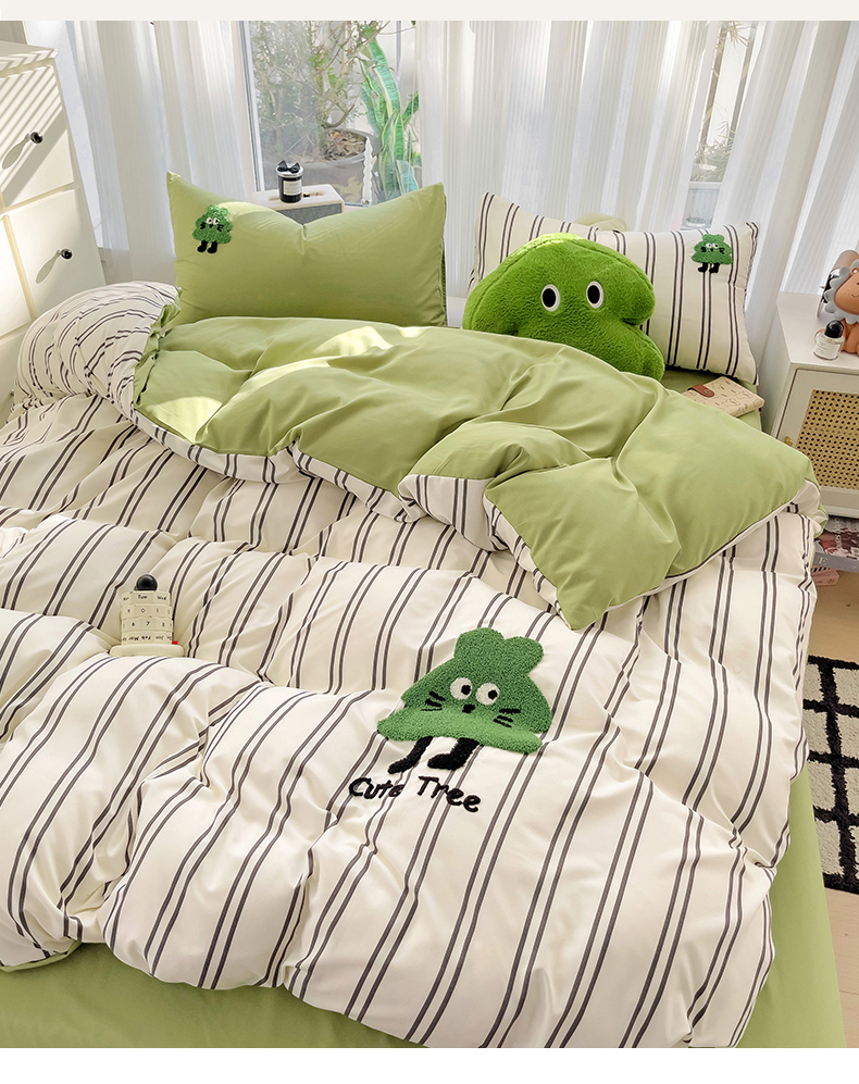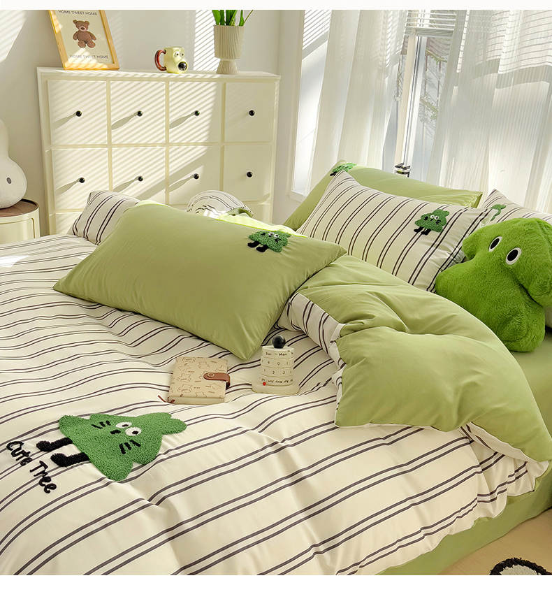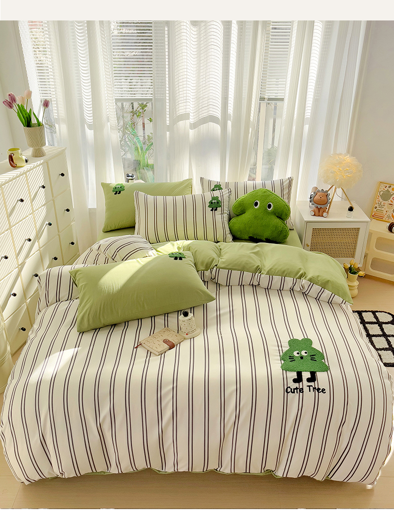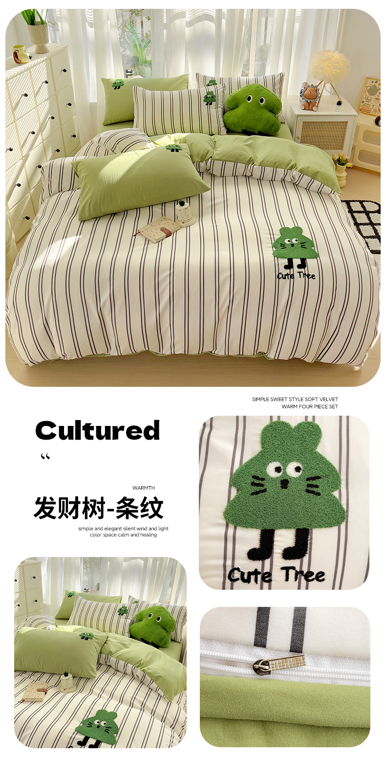 商品名称:尤米 2024新款ins博主风系列毛巾绣系列单被套 发财树-条纹