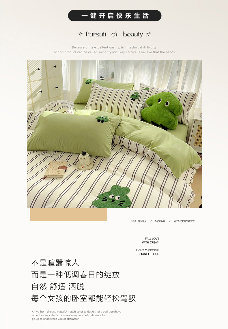 (总) 尤米 2024新款奶油风水洗棉四件套,可爱狗-白,可爱狗-粉,小熊猫-黄,小熊猫-蓝,郁金香-白,郁金香-绿
