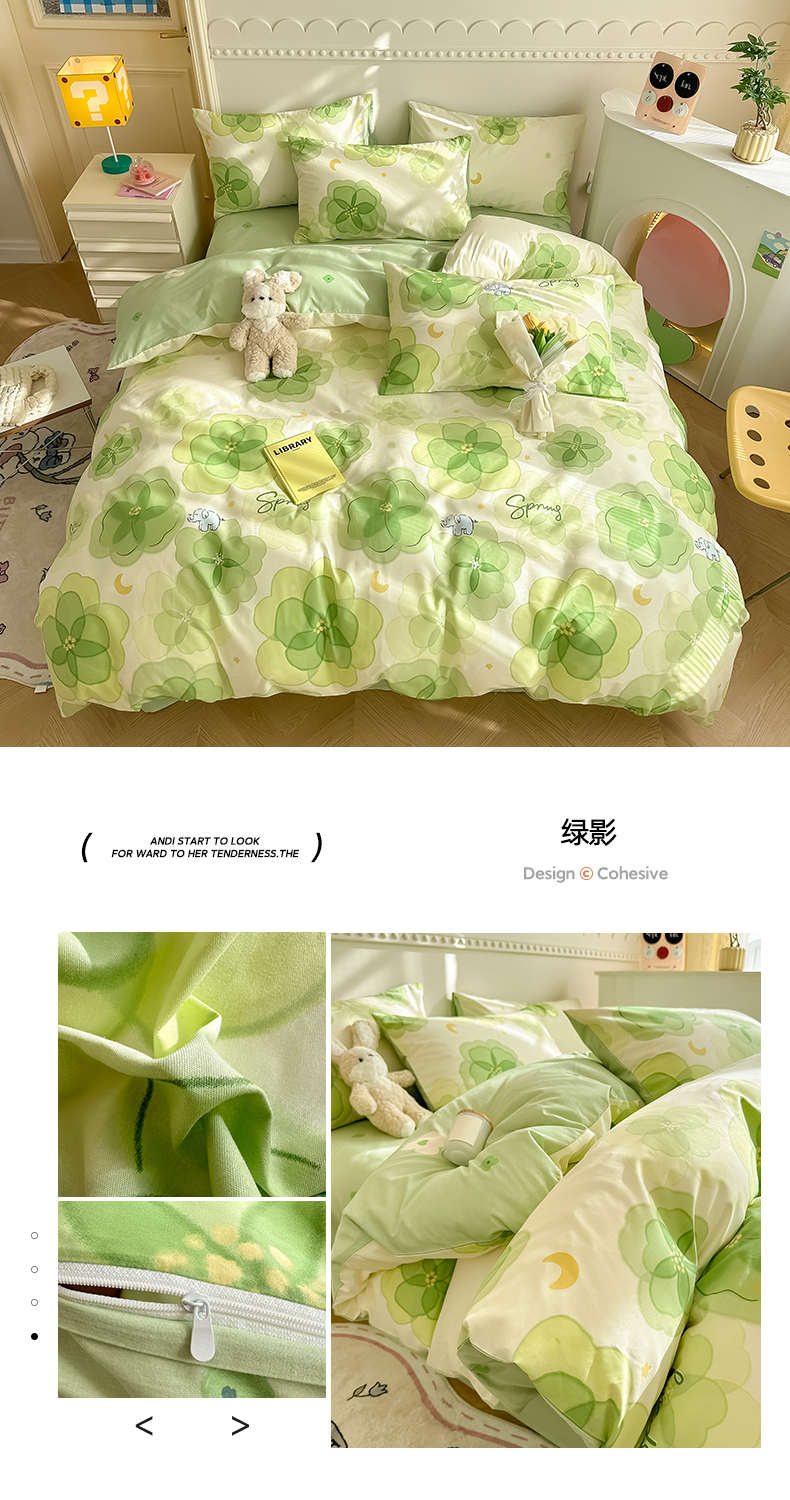 简宜家居 2025新款40支13070全棉斜纹繁花系列四件套 绿影