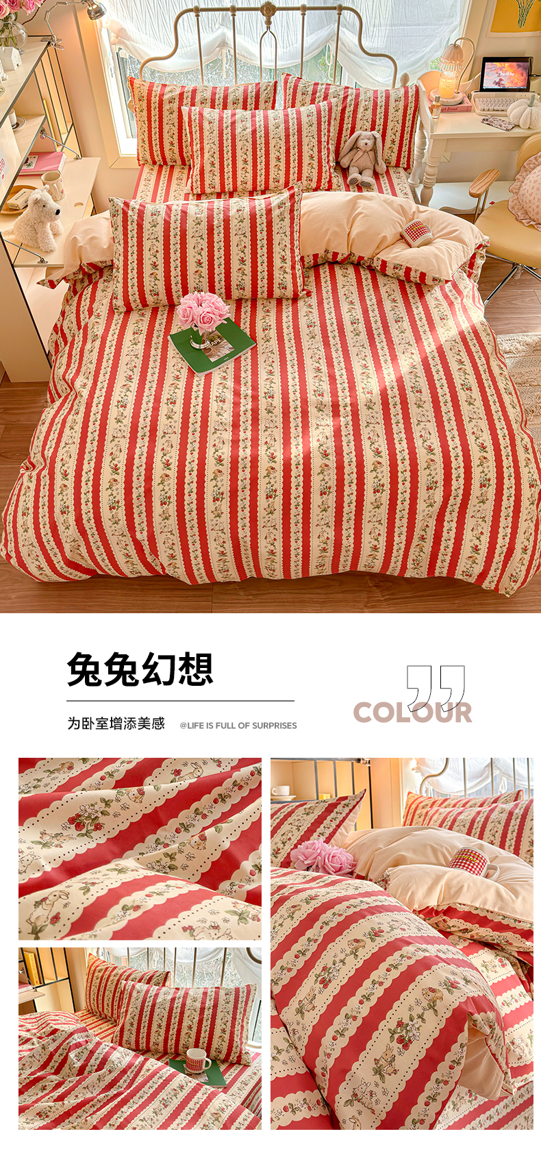 当前位置: 91家纺网 > 商品网购 > 床品套件 > 四件套 > 全棉普通四件套 > 名兮家居 2024新款卡通风系列全棉四件套 兔兔幻想