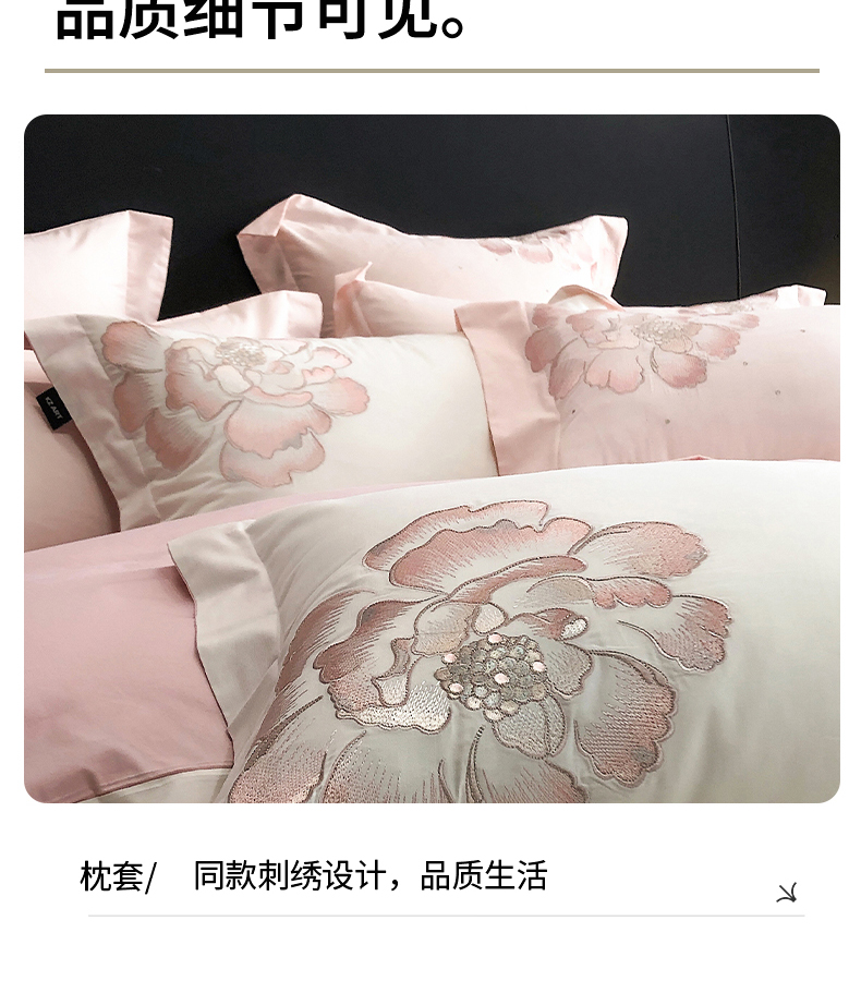 (总)卡姿家纺 2025春夏新款轻奢优雅刺绣金丝羽系列四件套,金丝羽白,金丝羽粉,金丝羽蓝,金丝羽紫