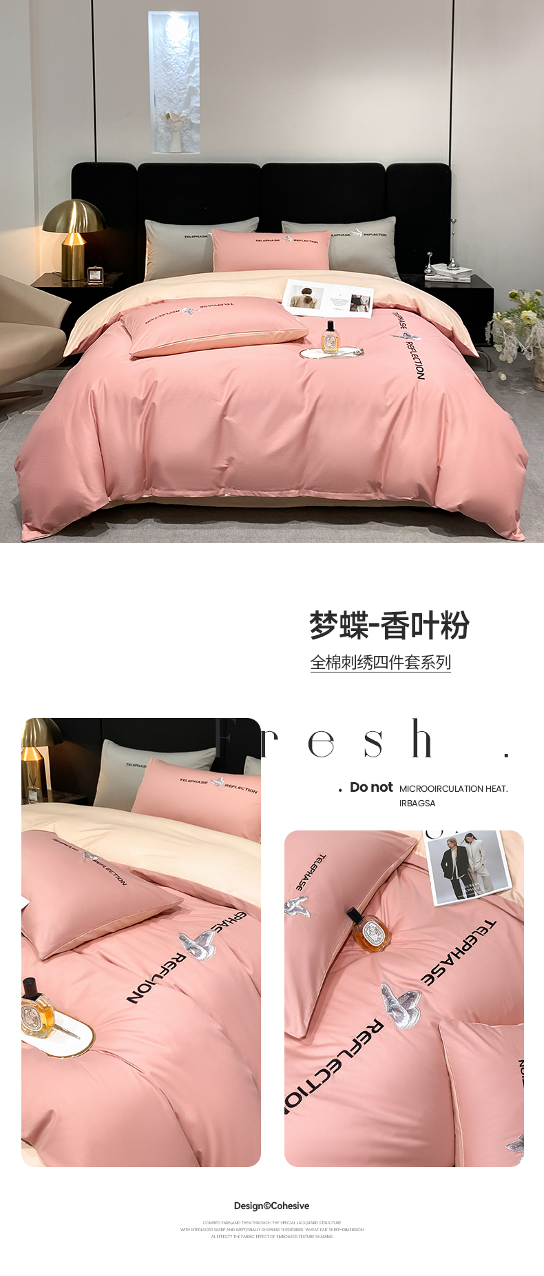 澳梵家居 2024新款60支全棉刺绣四件套-梦蝶系列 梦蝶-香叶粉