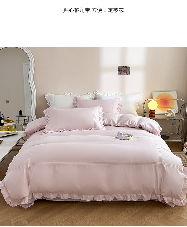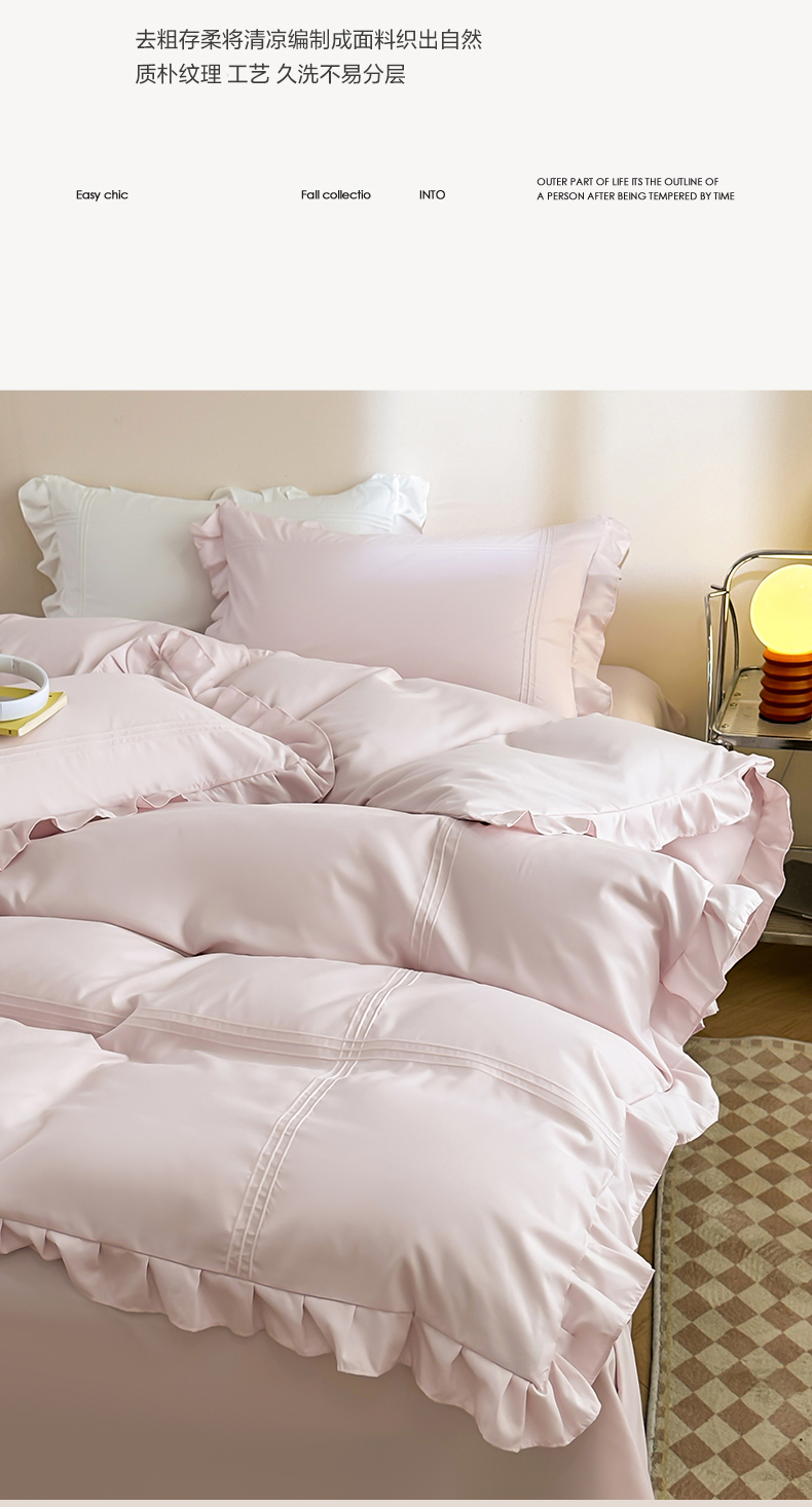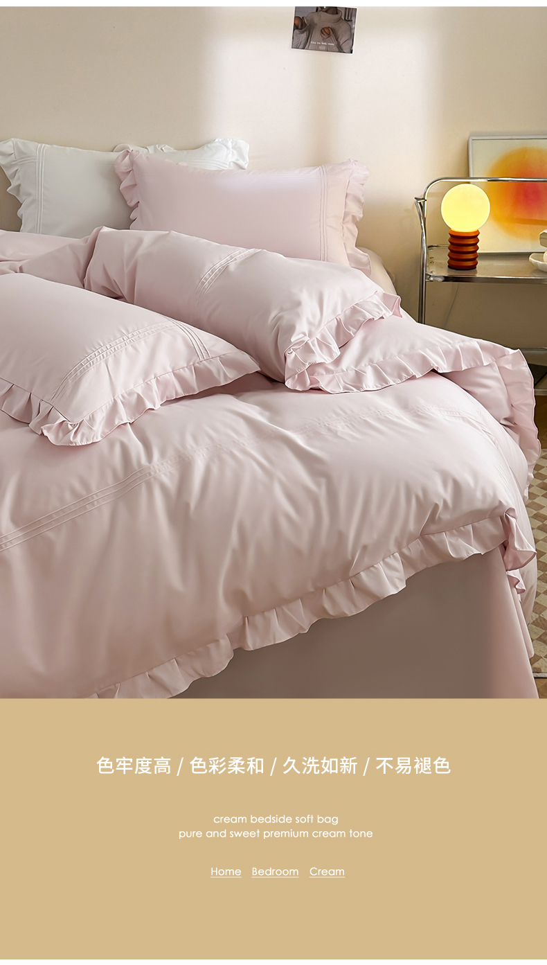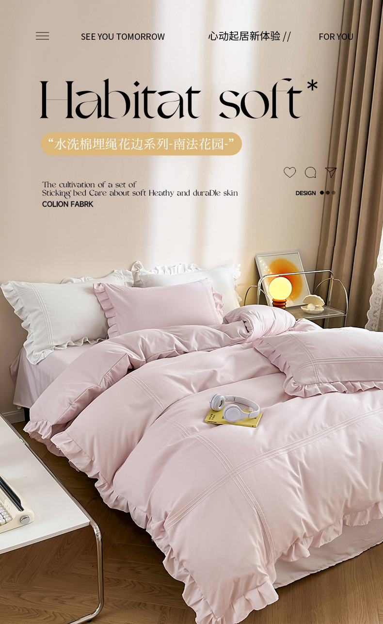 商品名称:绒兔兔 2024新款水洗棉埋绳花边系列-南法花园 粉玉
