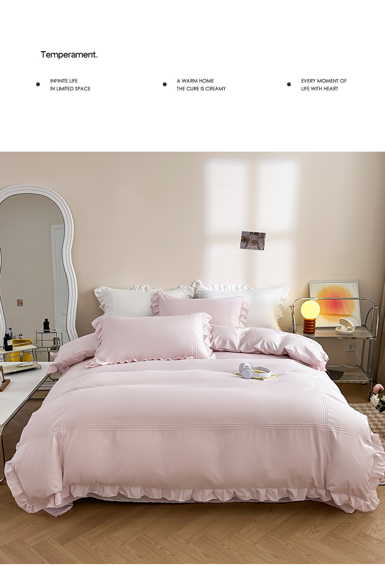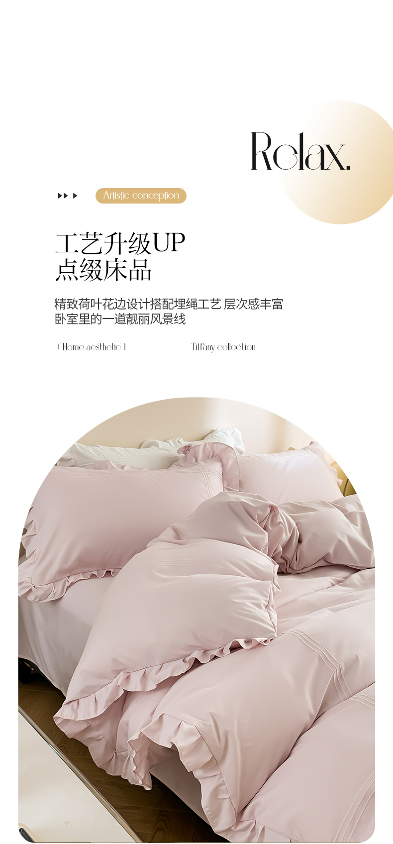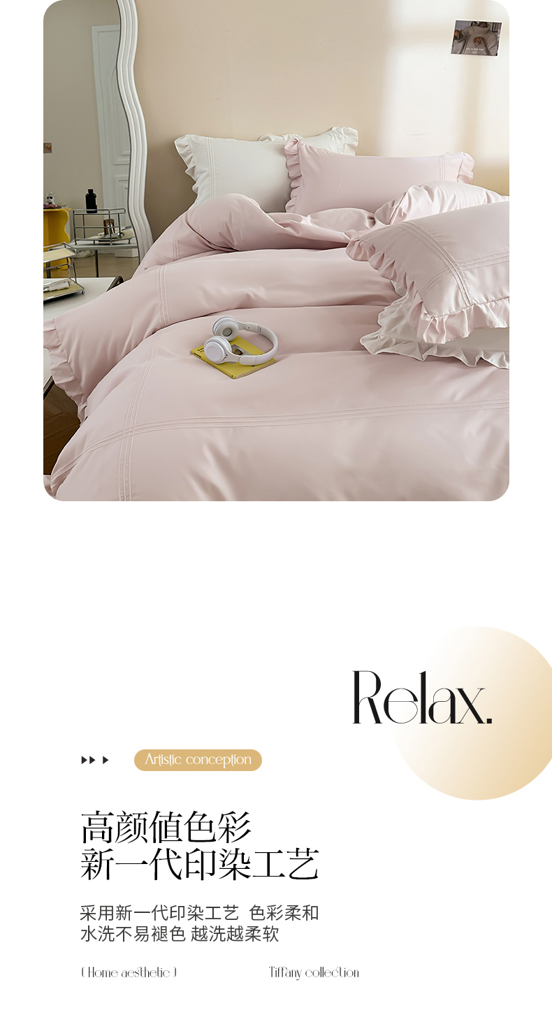 商品名称:绒兔兔 2024新款水洗棉埋绳花边系列-南法花园 粉玉