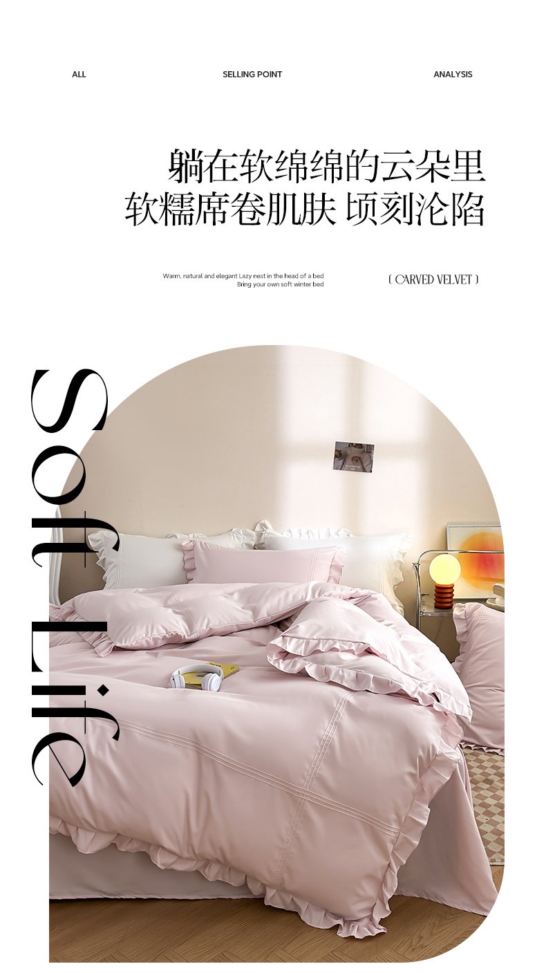 (总)绒兔兔 2021牛奶绒韩版揪花床裙四件套,潮蓝,豆绿,咖啡,魅紫,米白,嫩粉,深海蓝,太空灰,铁锈红,土黄