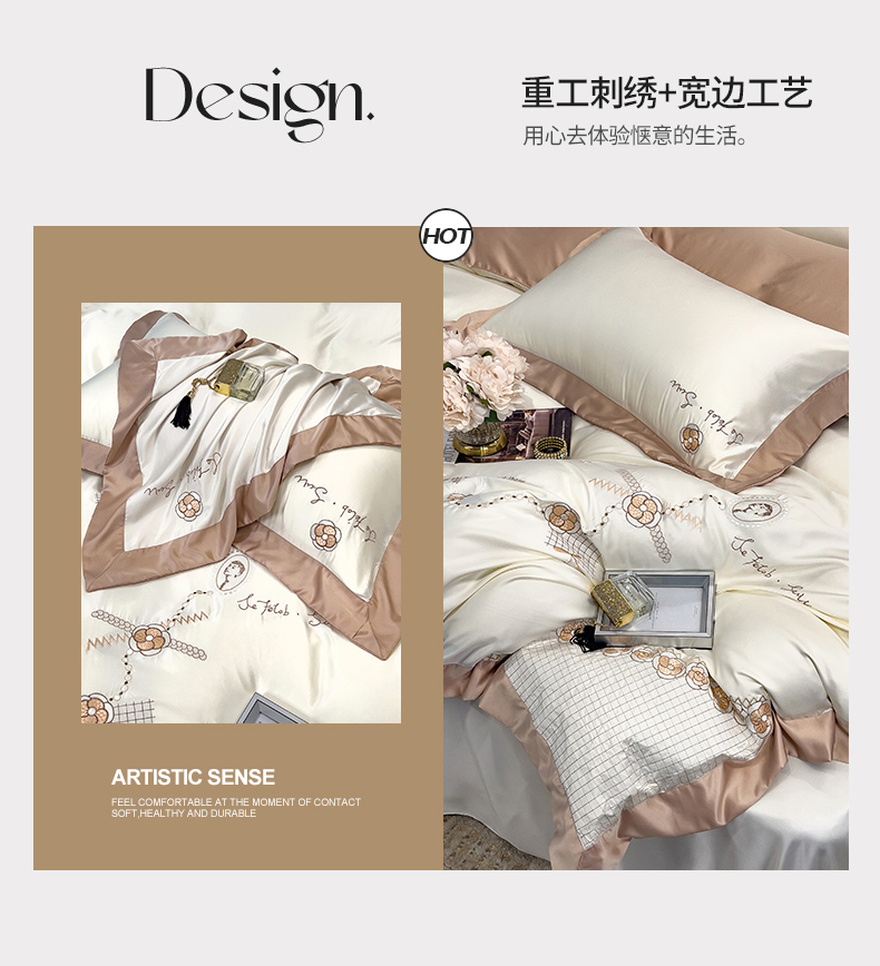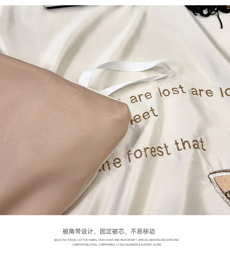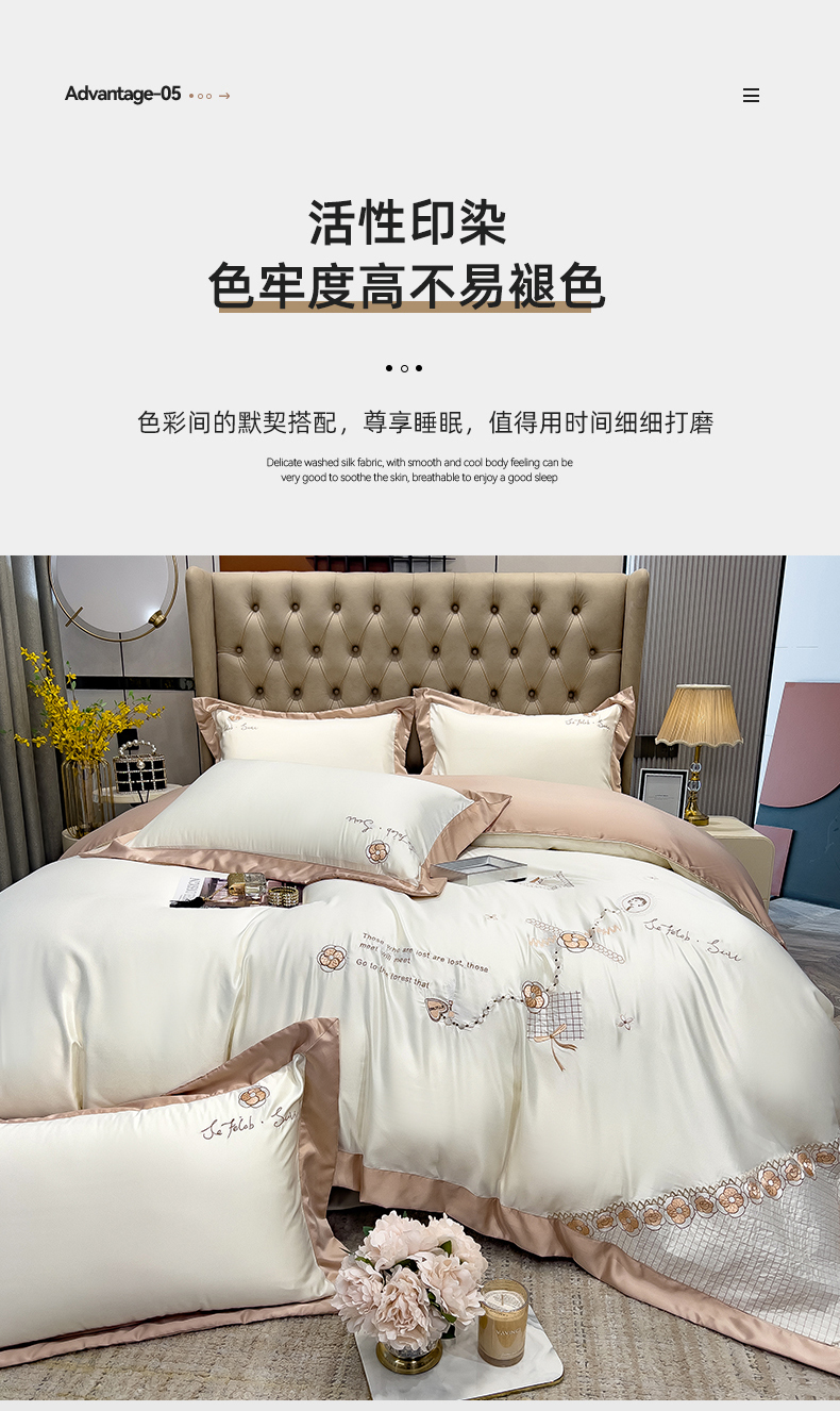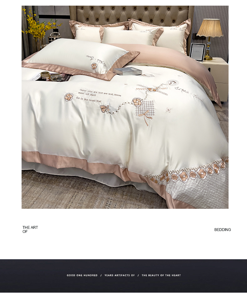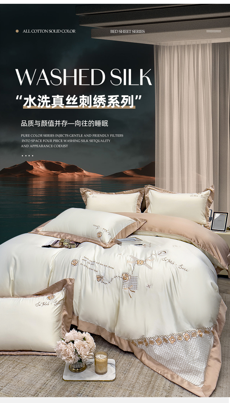 欧冠家纺 2024新款绣花水洗真丝四件套莱娅四件套 莱娅-珍珠白