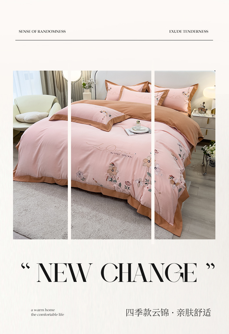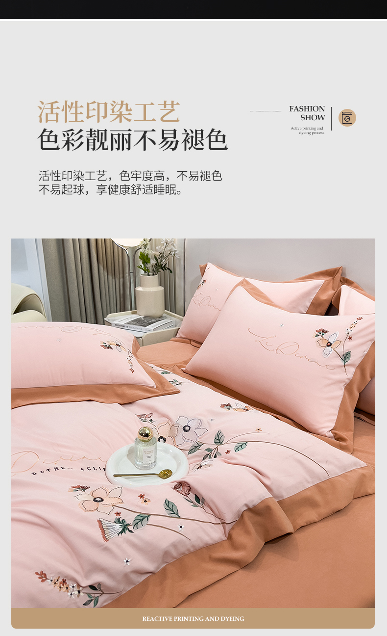 欧冠家纺 2024新款四季款锦棉绣花盛夏光年四件套 盛夏光年-玉色