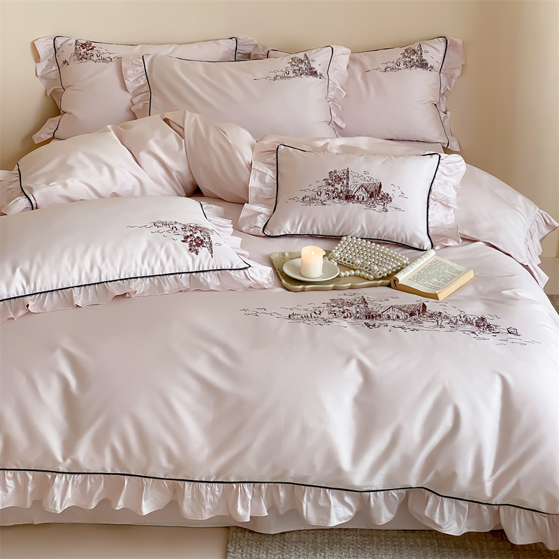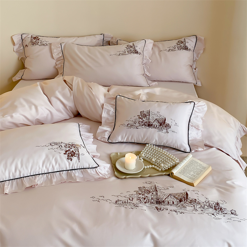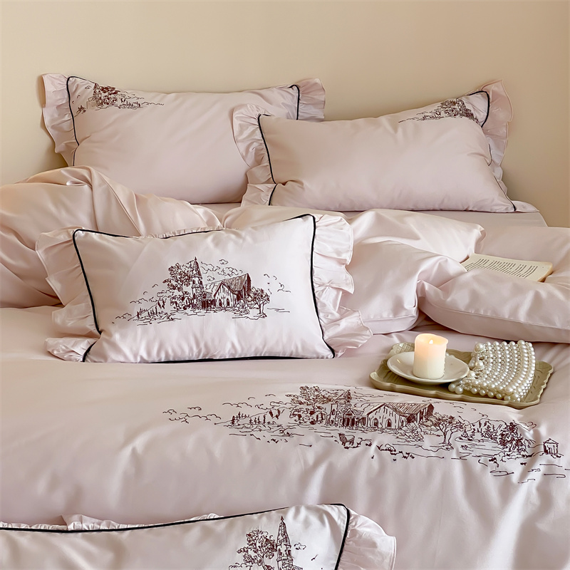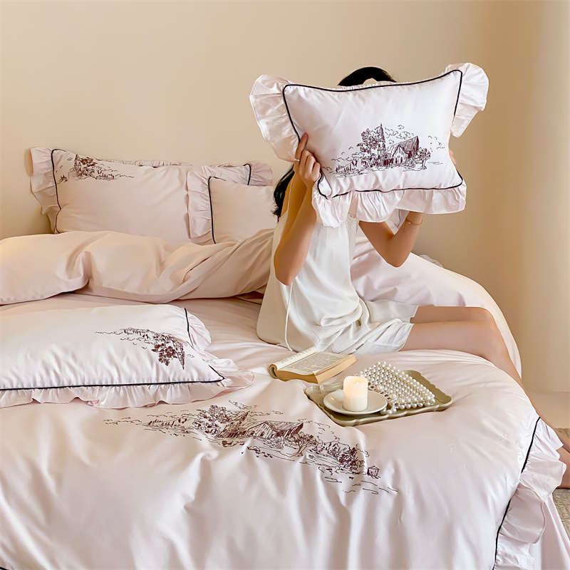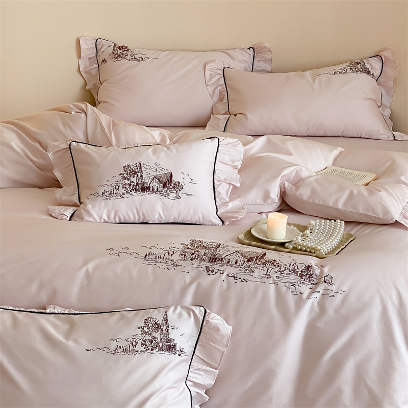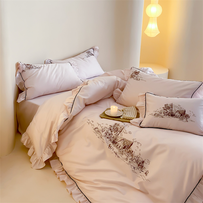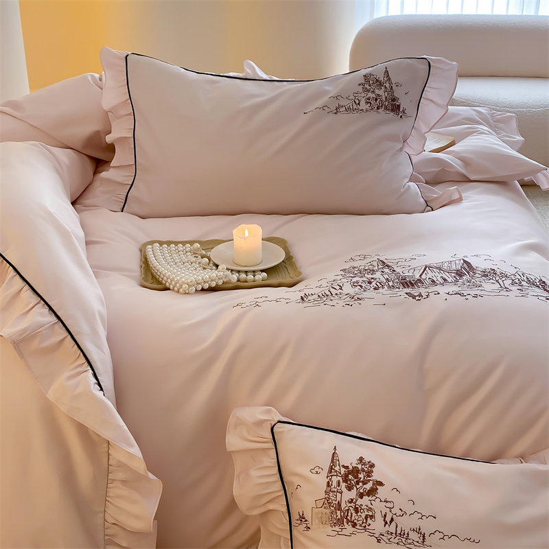 商品名称:馨蕊家居 2024新款100支全棉四件套-南希 南希-初夏粉