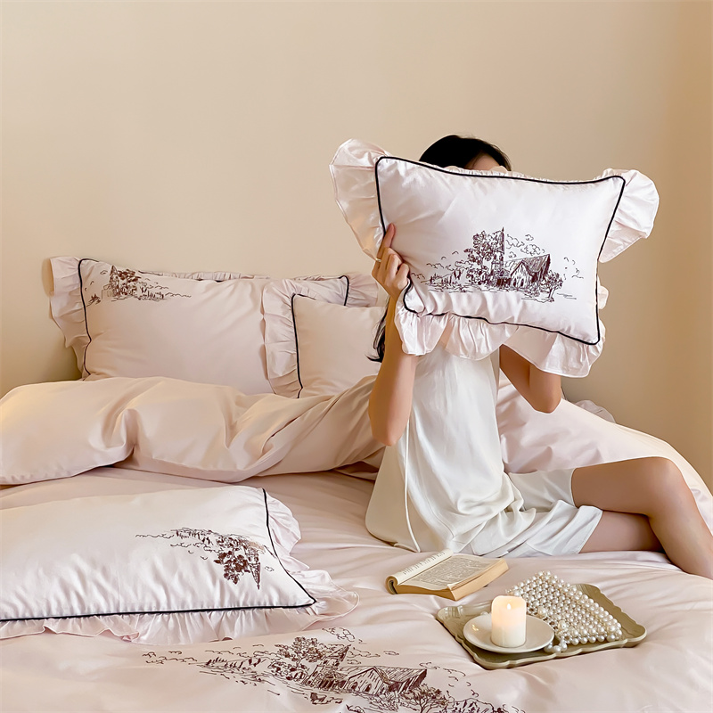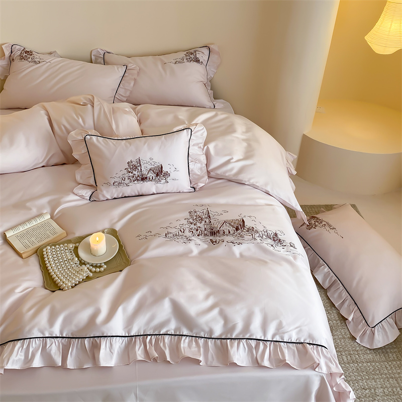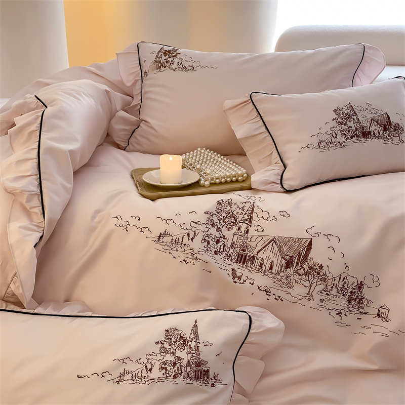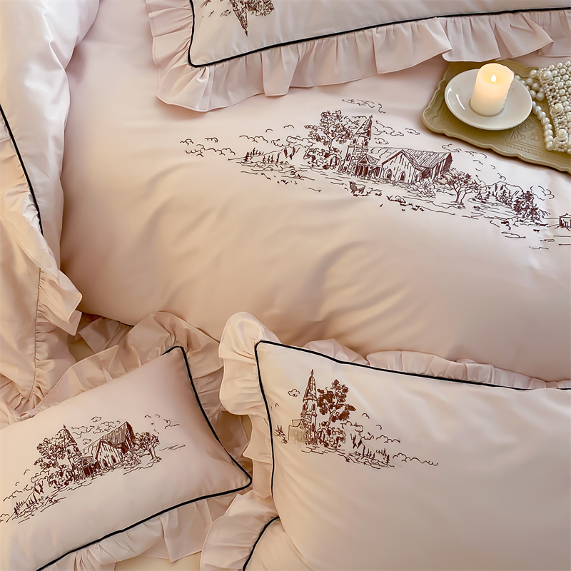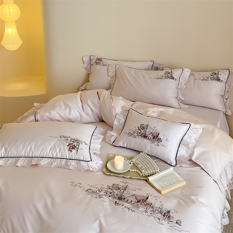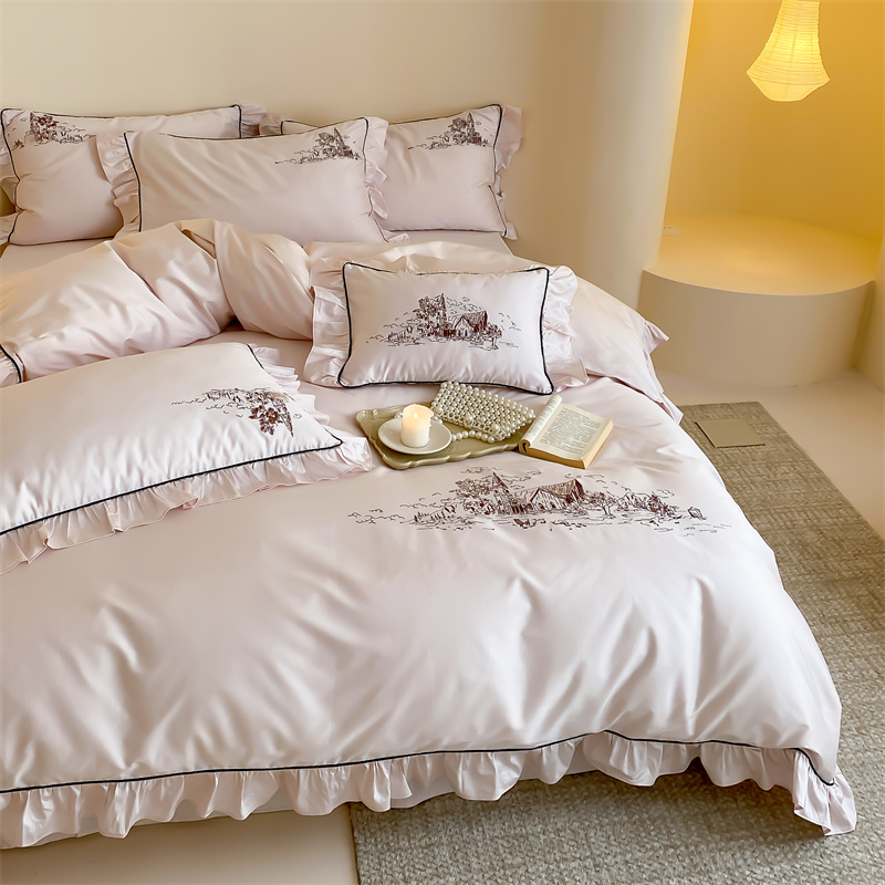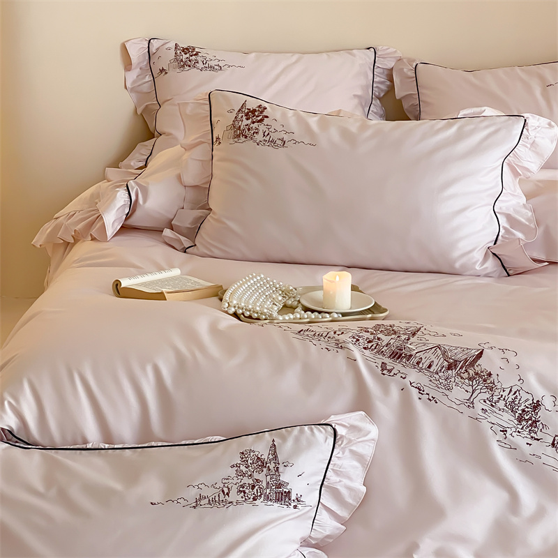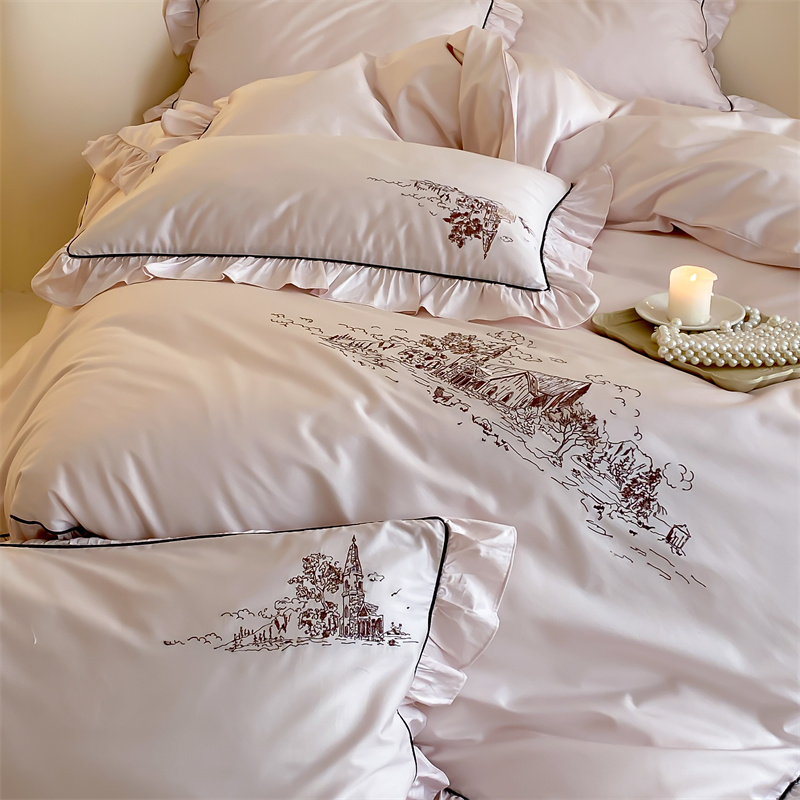 商品名称:馨蕊家居 2024新款100支全棉四件套-南希 南希-初夏粉