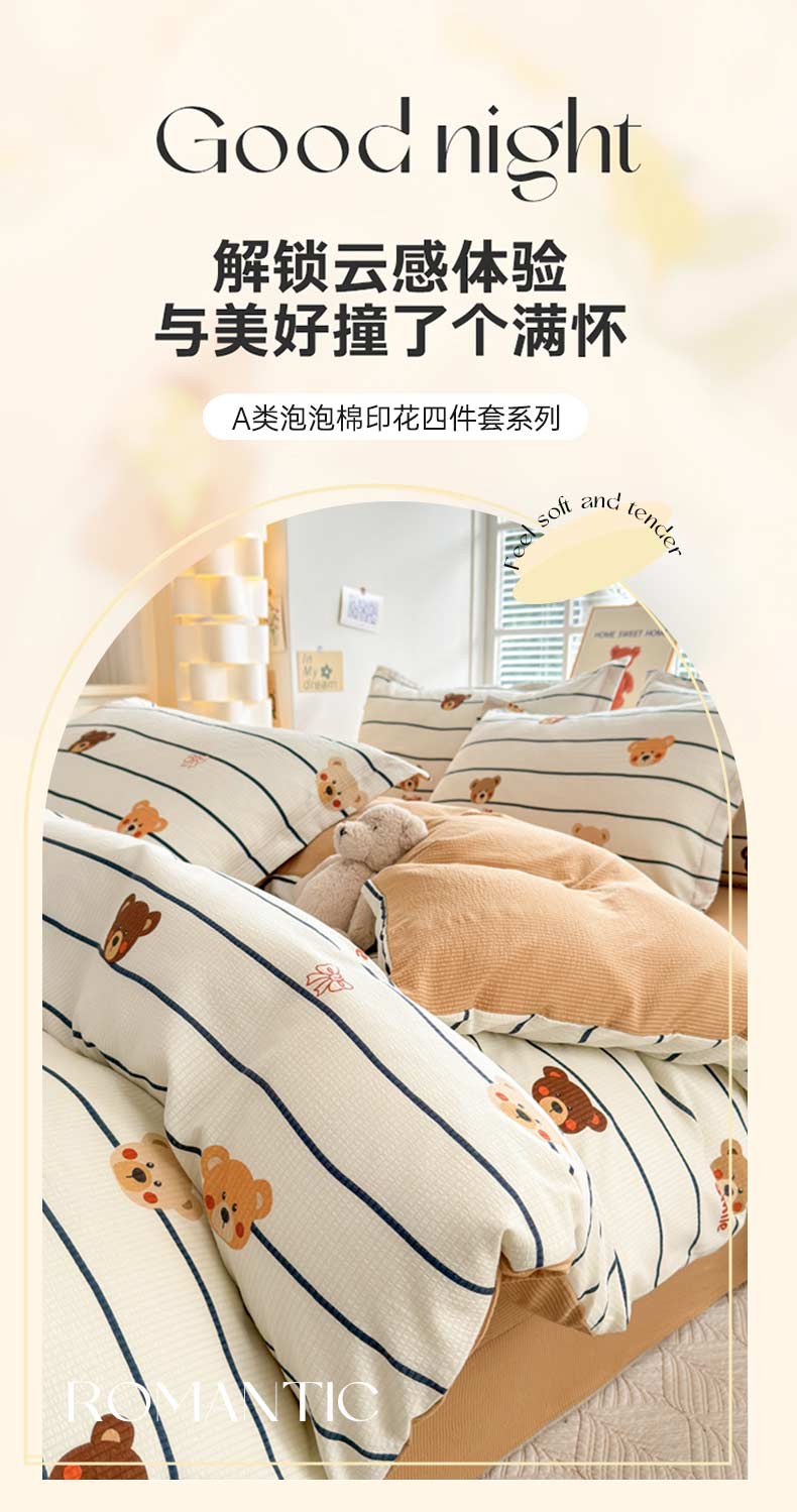商品名称:席佬大 2025新款A类提花泡泡云朵棉四件套 米拉熊