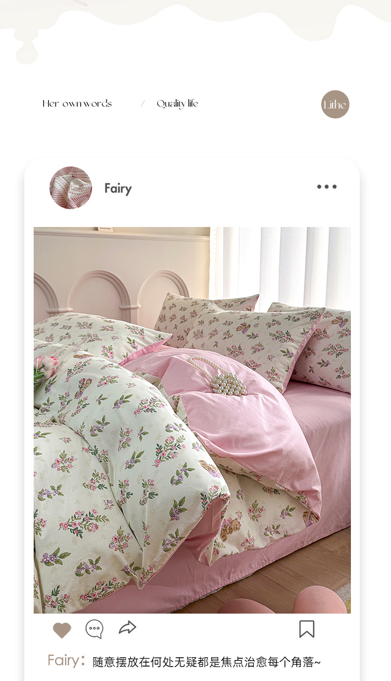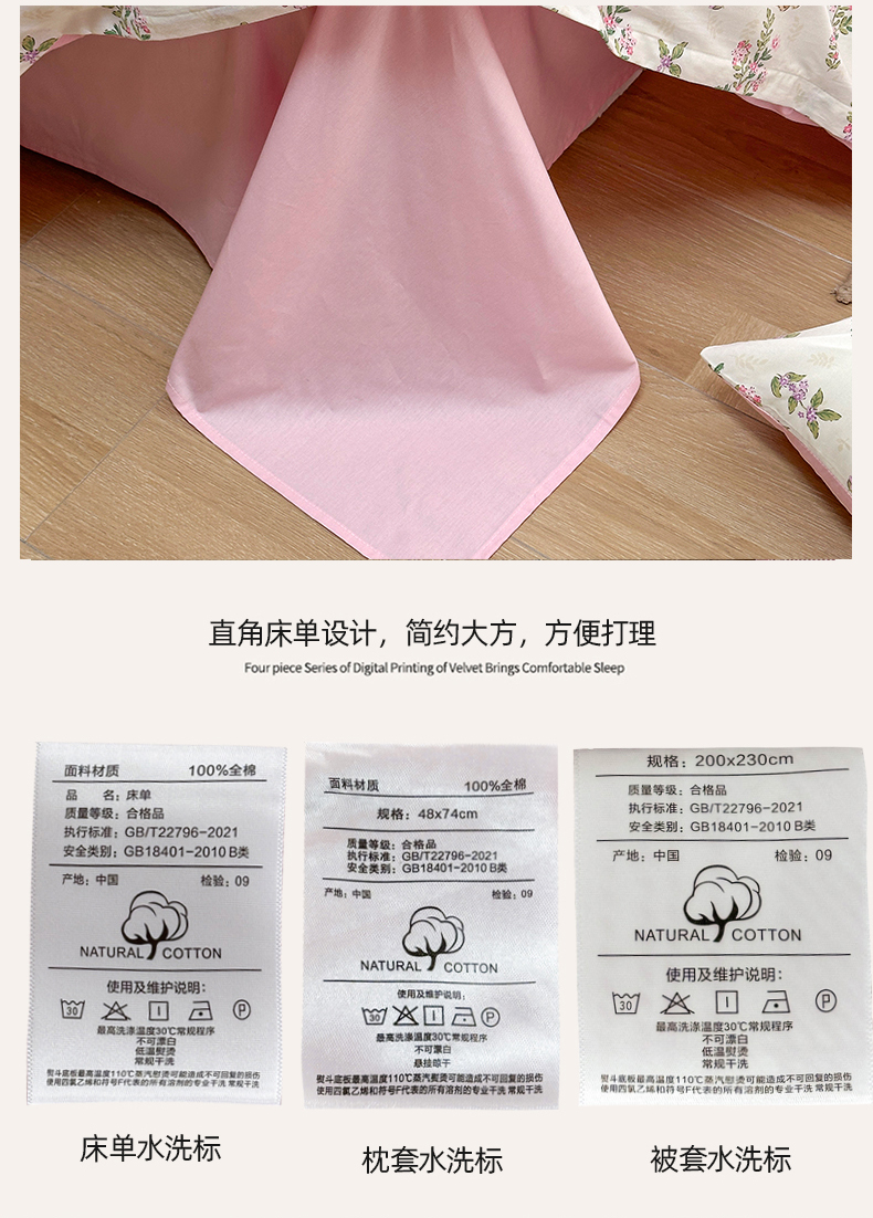 商品名称:潮邦创意家居 2025新款全棉13070多风格纯棉四件套-花卉小清新系列 花萃清风