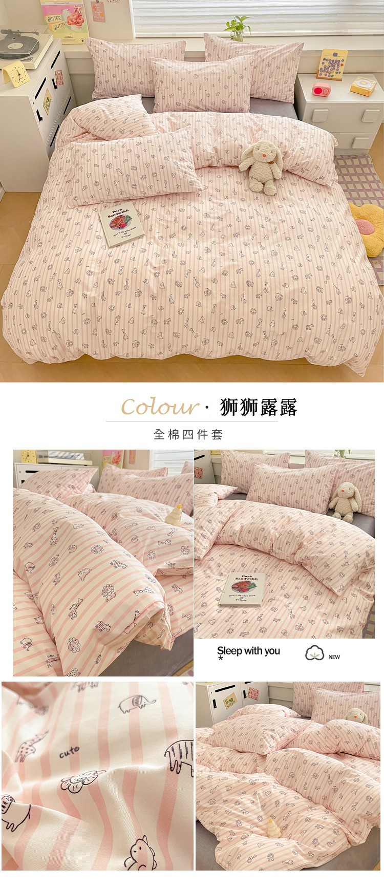 当前位置: 91家纺网 > 商品网购 > 床品套件 > 四件套 > 全棉普通四件套 > 柠馨 2024新款全棉13376乖萌系列四件套(第六批) 狮狮露露