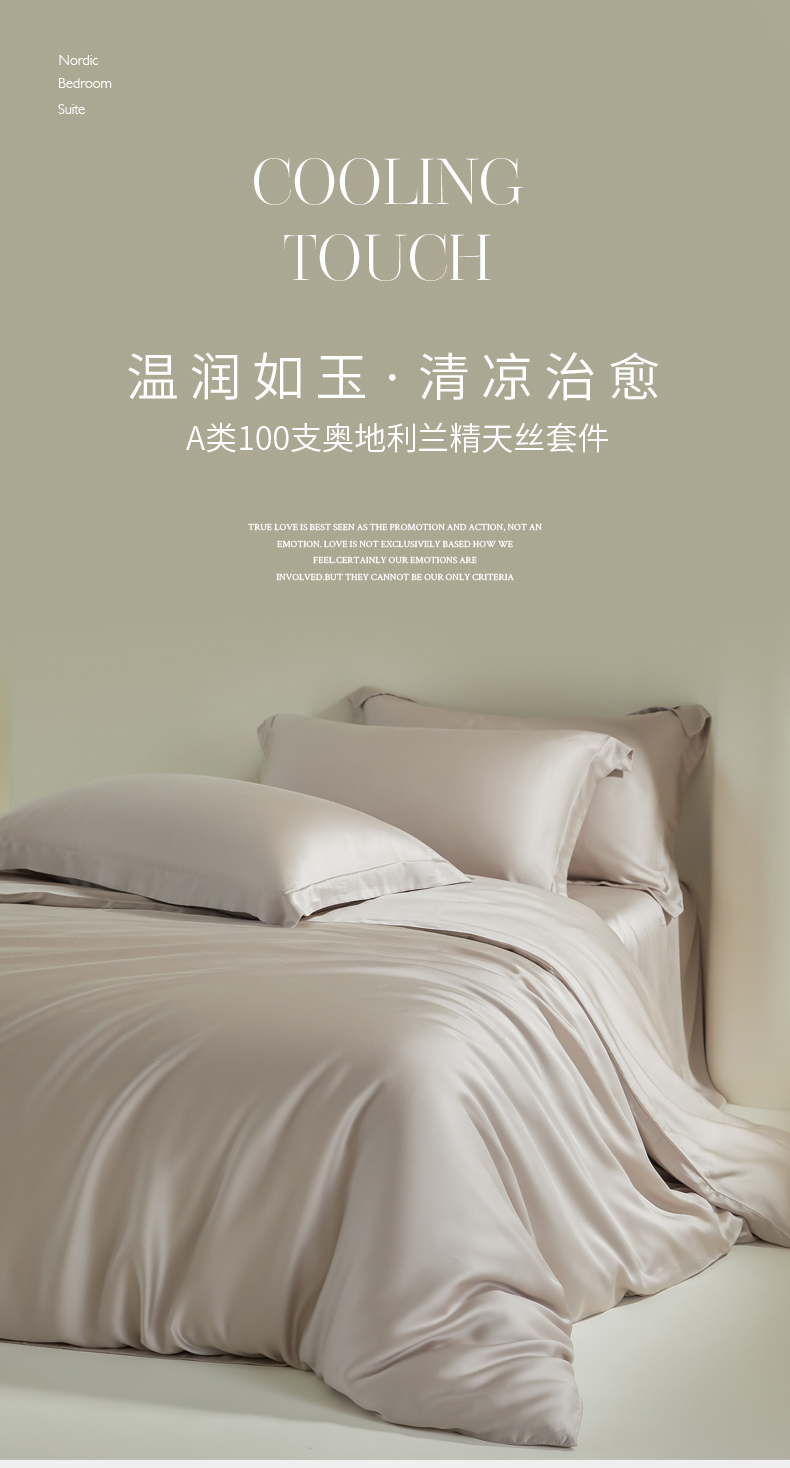 商品名称:(总)618家纺 2024新款A类60S100支兰精天丝四件套-简约系列 天丝简约椰子灰