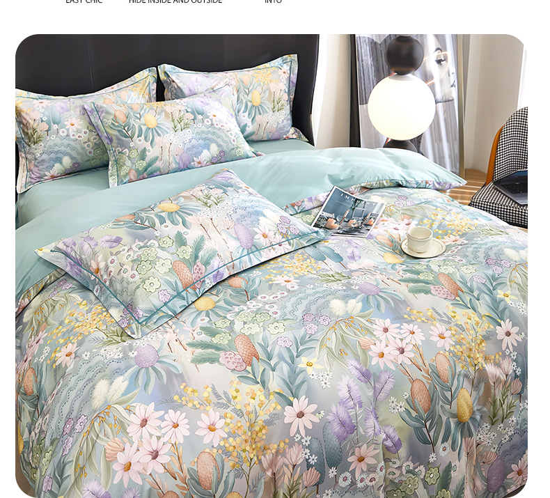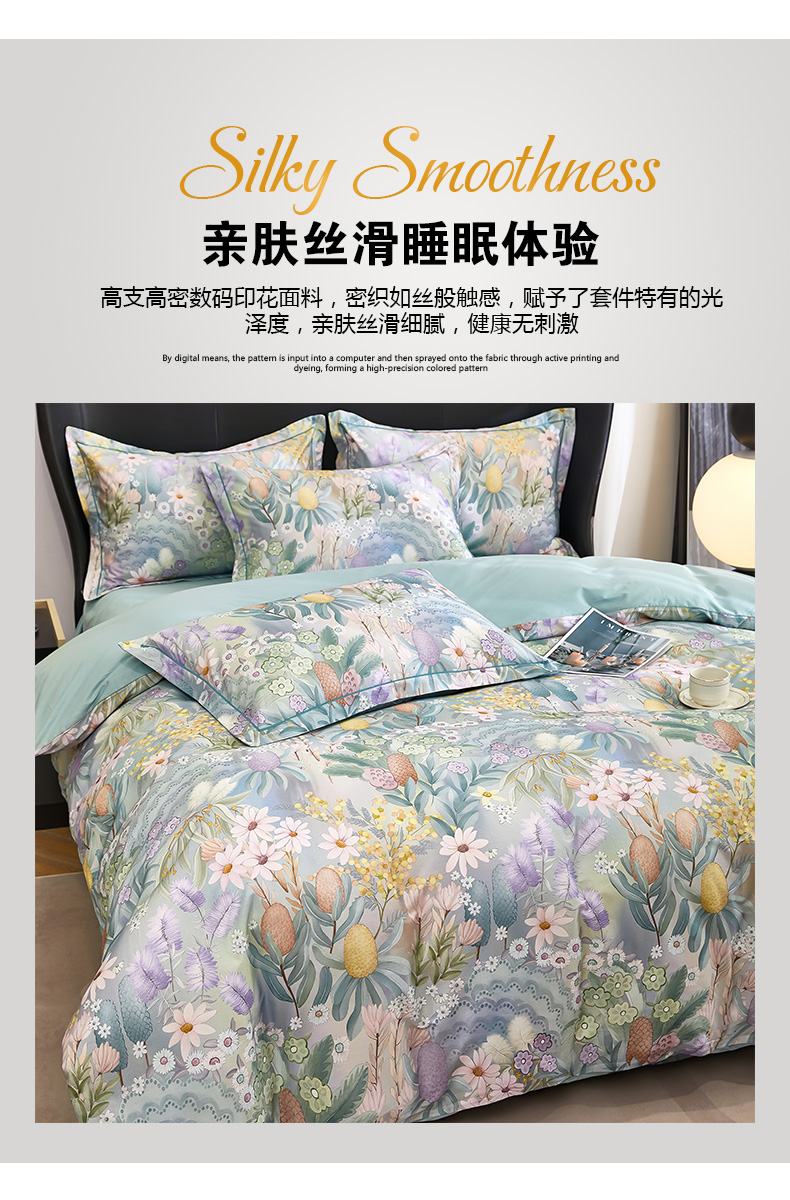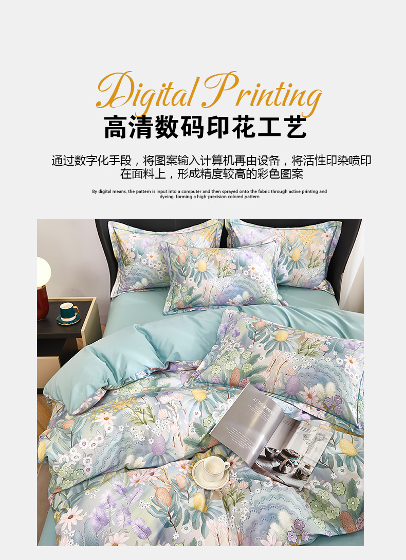 商品名称:雲归梦 2024新款全棉铂金棉数码印花四件套 洛香忆梦 绿