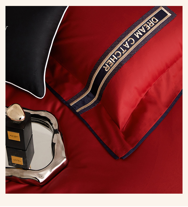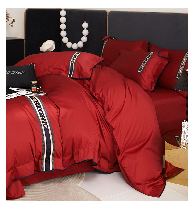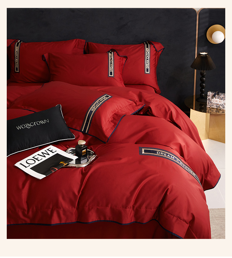 爱缦 2024新款100支澳棉CR工艺极简轻奢刺绣四件套-茹伊 风格二 汐云红