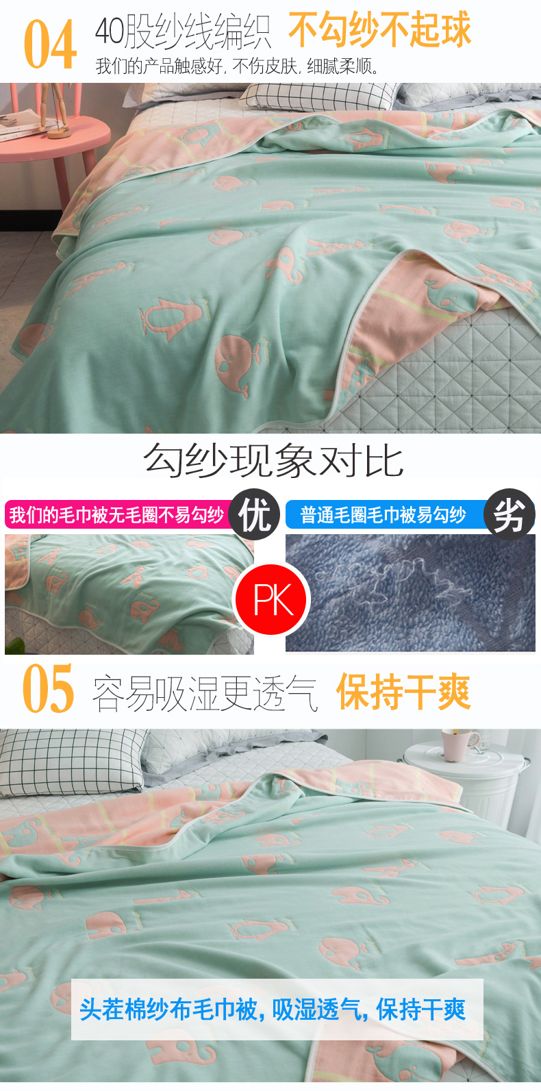 商品名称:朴尔 2024经典六层纱布全棉毛巾被系列 绿色动物园