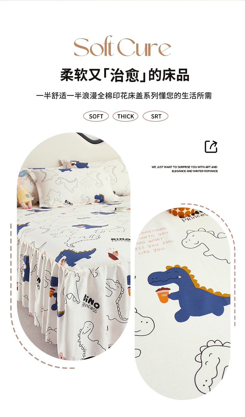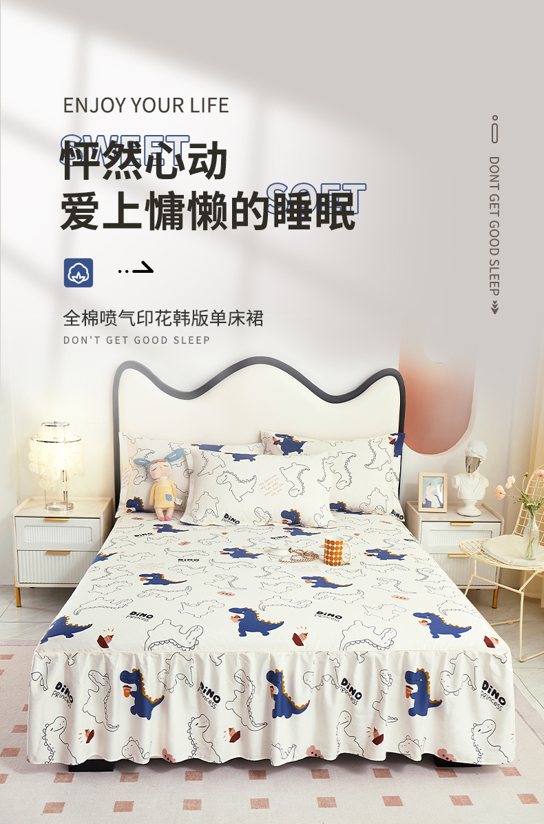 当前位置: 91家纺网 > 商品网购 > 床品套件 > 四件套 > 全棉普通四件套 > 名优家纺 2024新款全棉13070韩版小清新系列床裙四件套 面包龙
