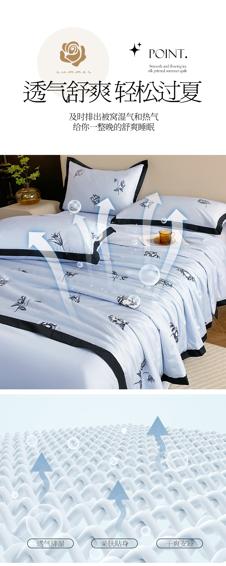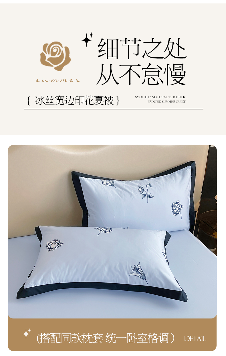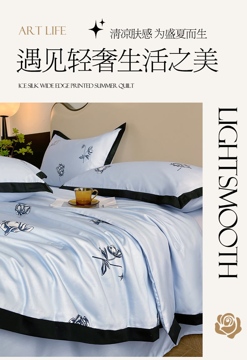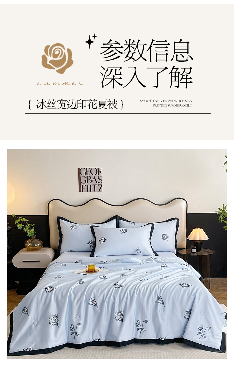 商品名称:(总)金麦家纺 2024新款冰丝宽边印花夏被子被芯-邂逅系列