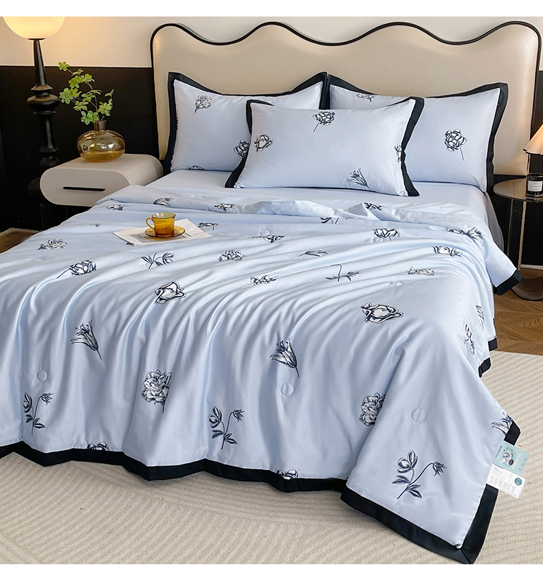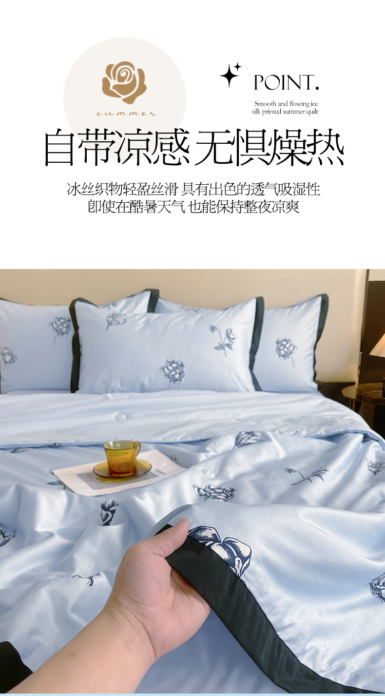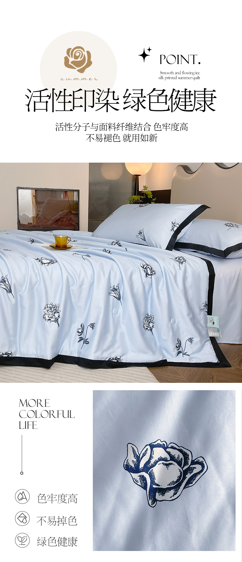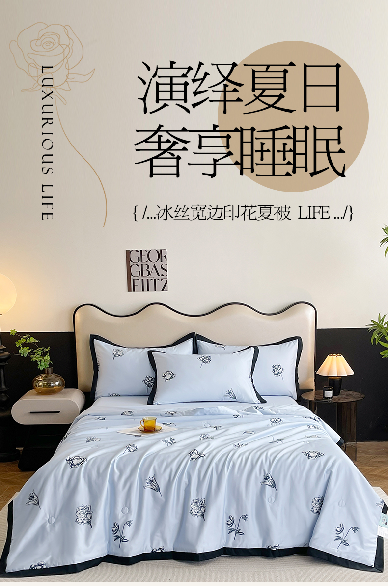商品名称:(总)金麦家纺 2024新款冰丝宽边印花夏被子被芯-邂逅系列