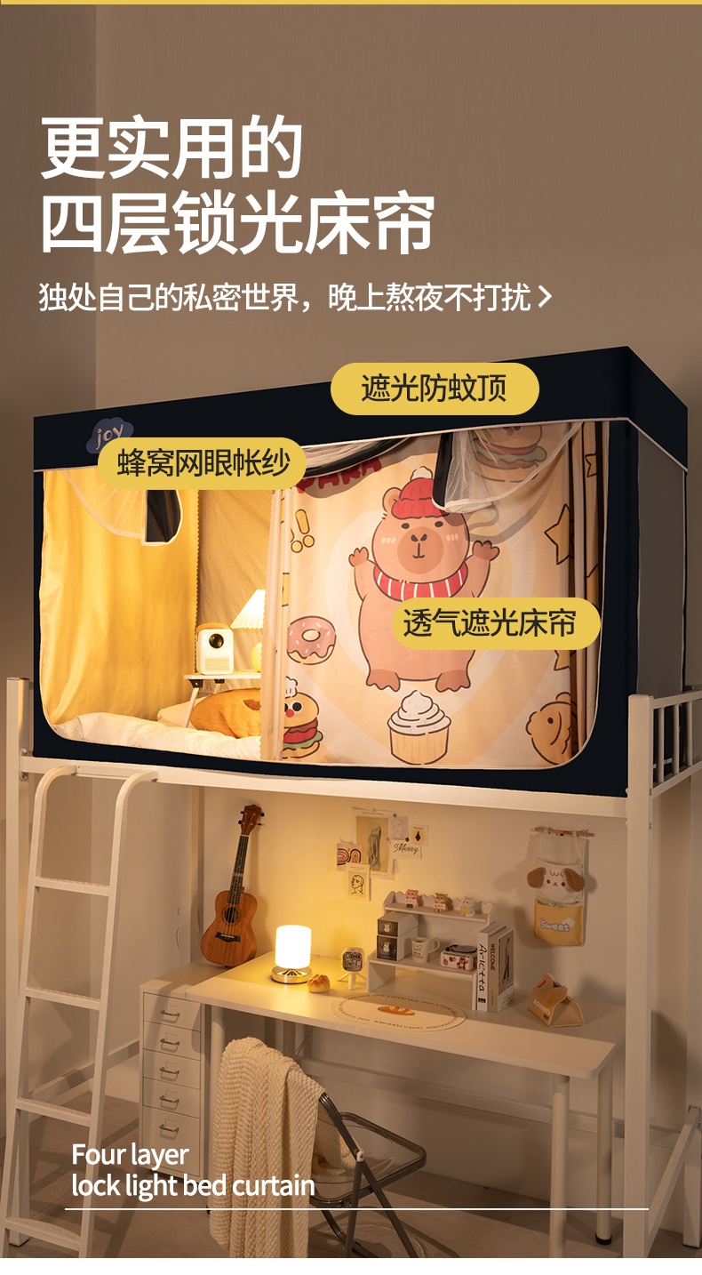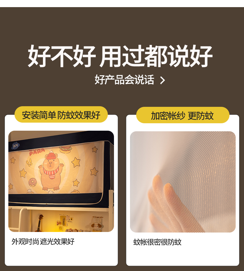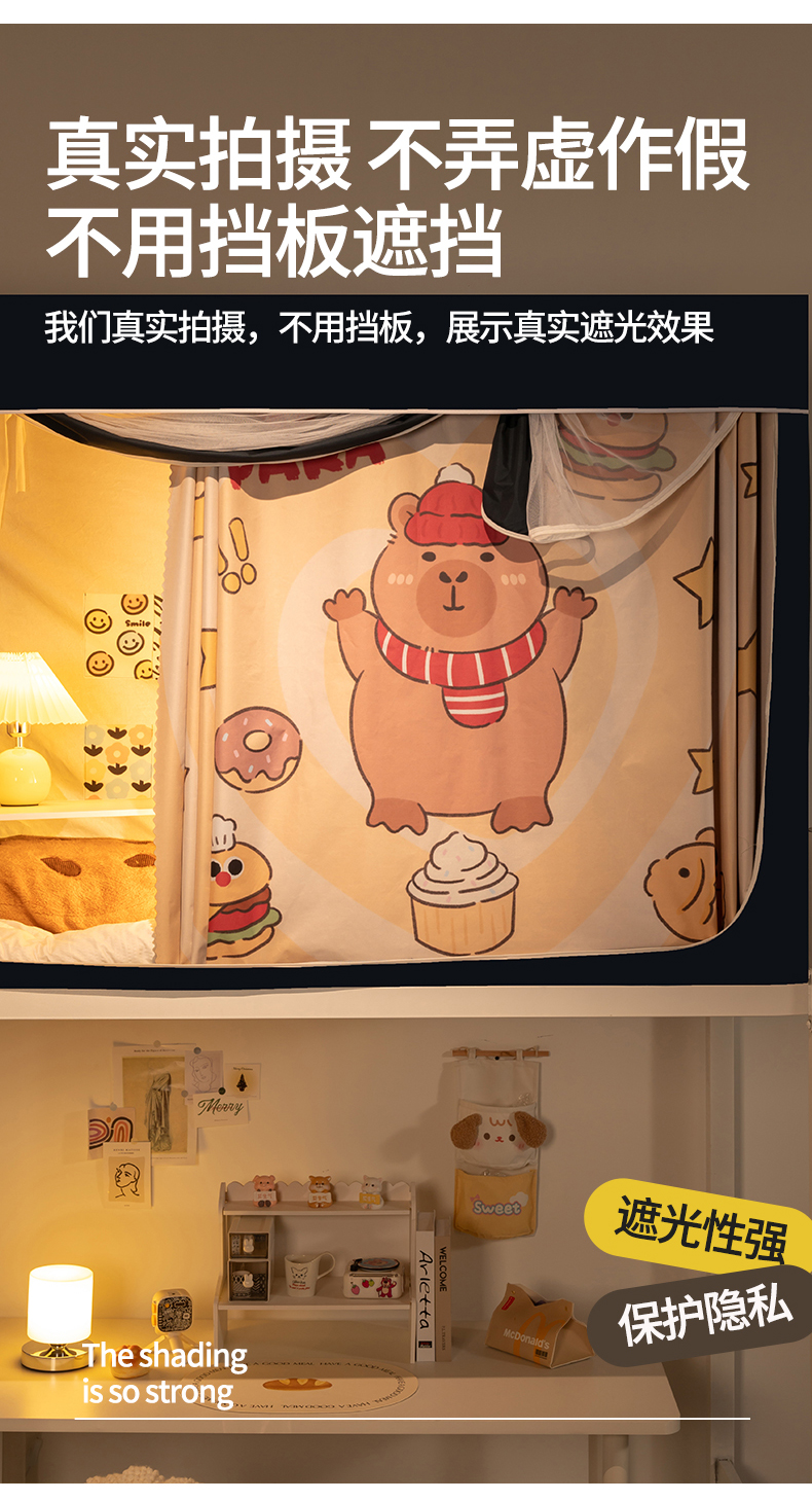 商品名称:新太阳蚊帐 2025新款涂层遮光防蚊款学生床帘 卡皮巴拉