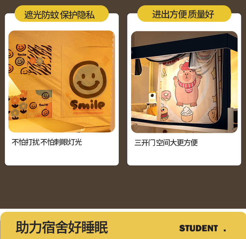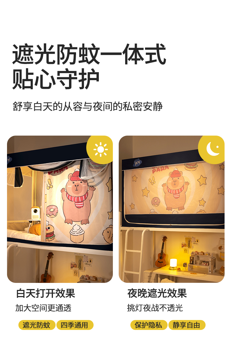 新太阳蚊帐 2025新款涂层遮光防蚊款学生床帘 卡皮巴拉