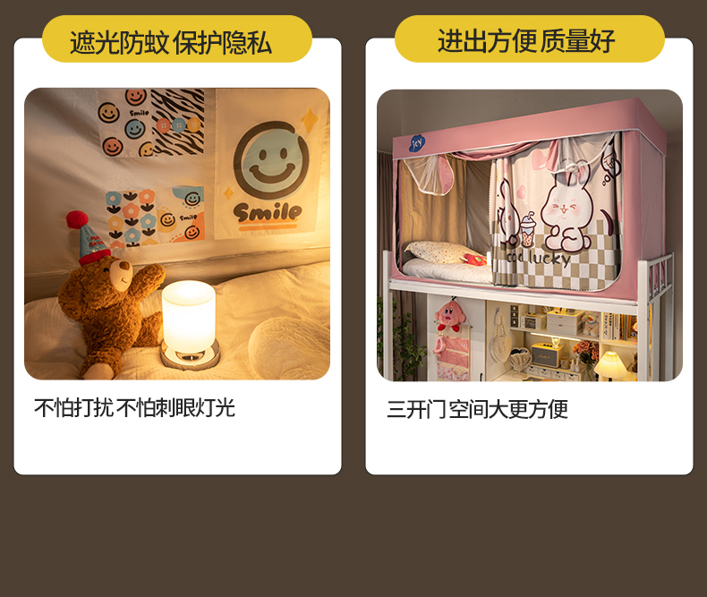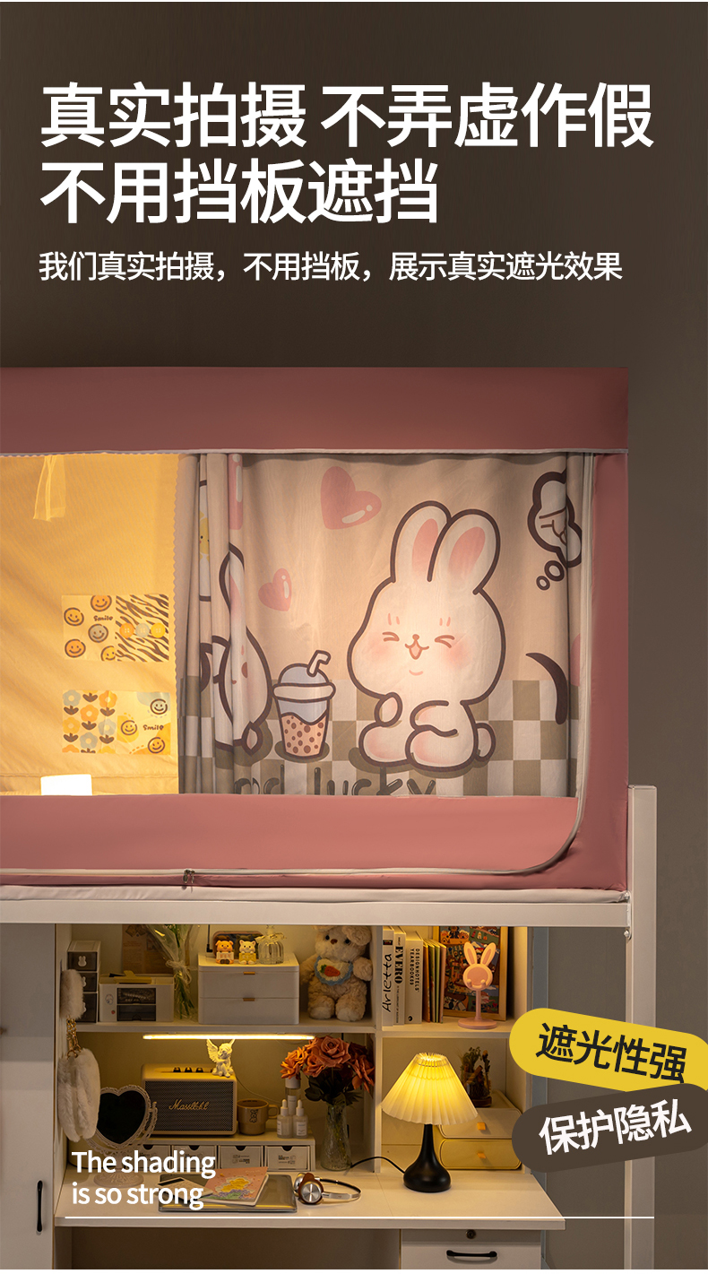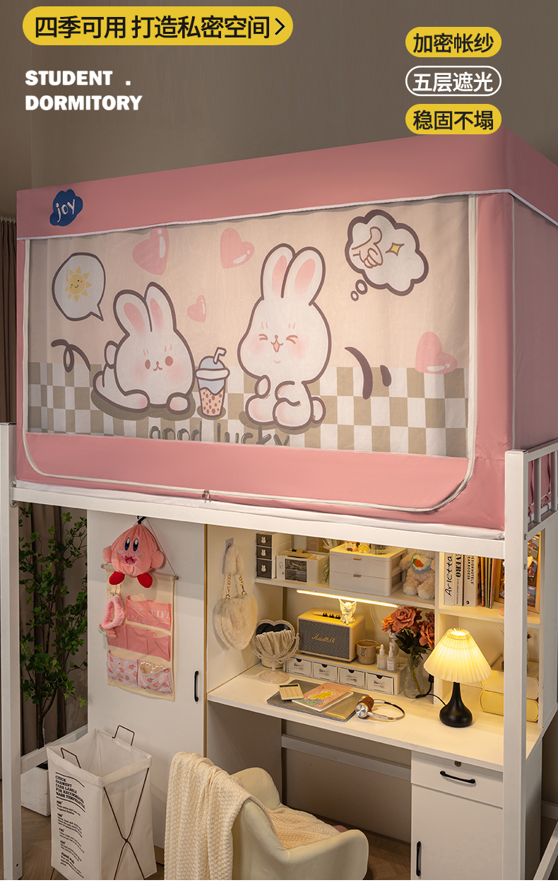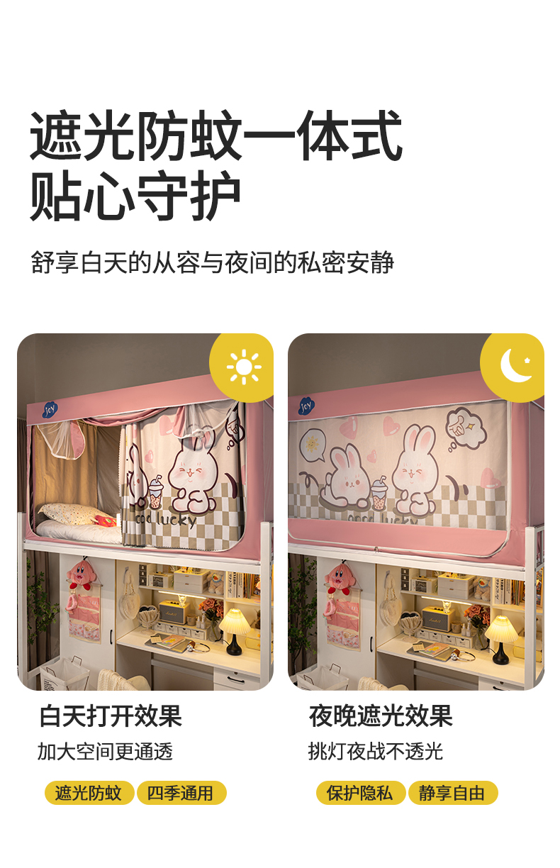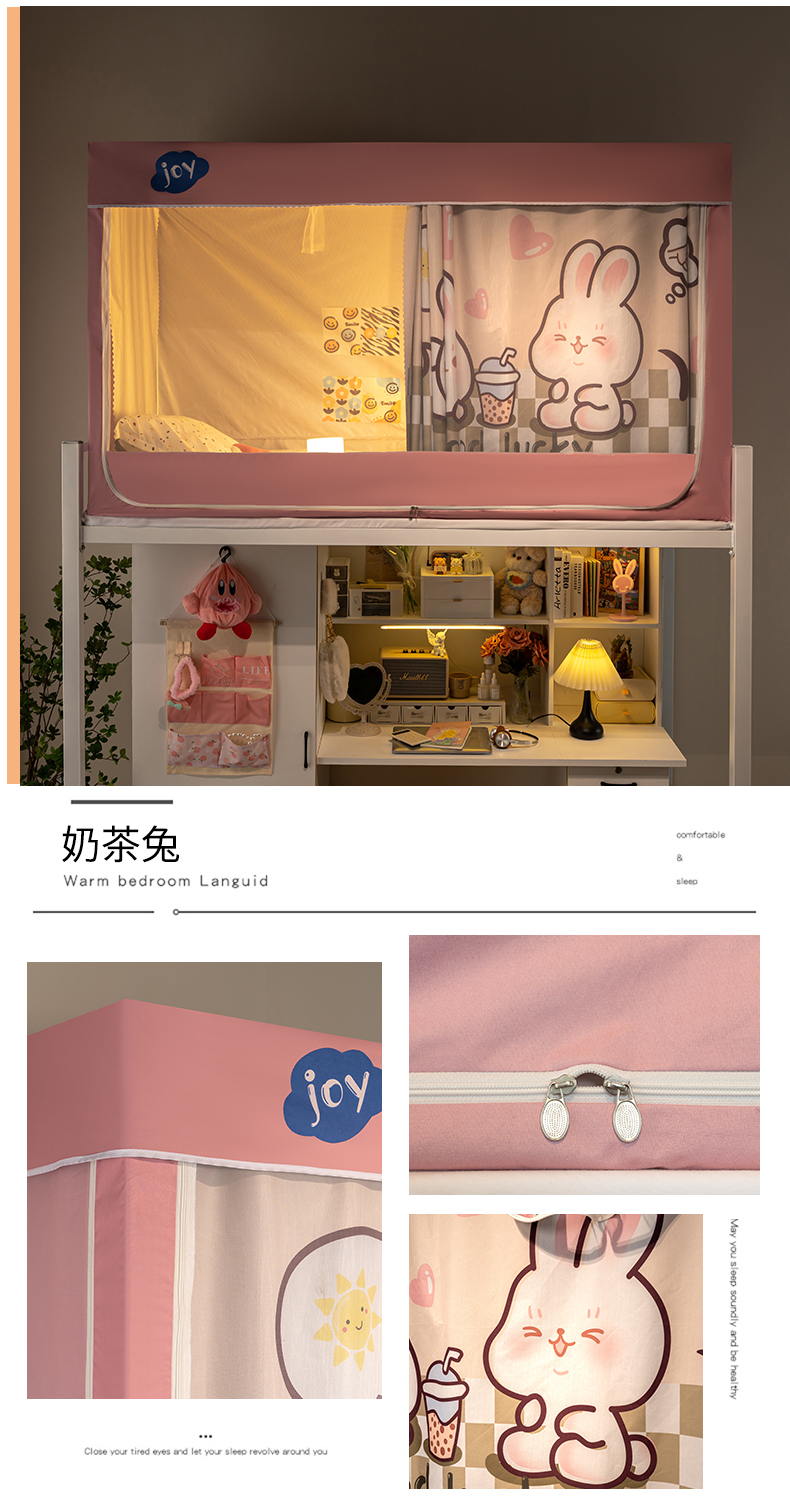 商品名称:新太阳蚊帐 2025新款涂层遮光防蚊款学生床帘 奶茶兔