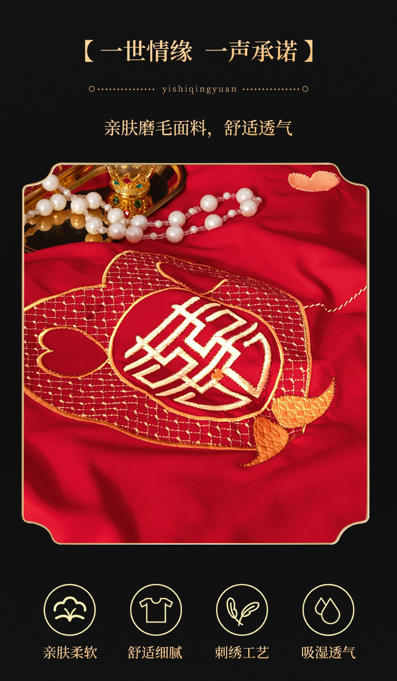 当前位置: 91家纺网 > 商品网购 > 床品套件 > 四件套 > 婚庆四件套 > 慕她家纺 2025新款磨毛婚庆四件套结婚刺绣花床品六喜庆 鸳鸯同心