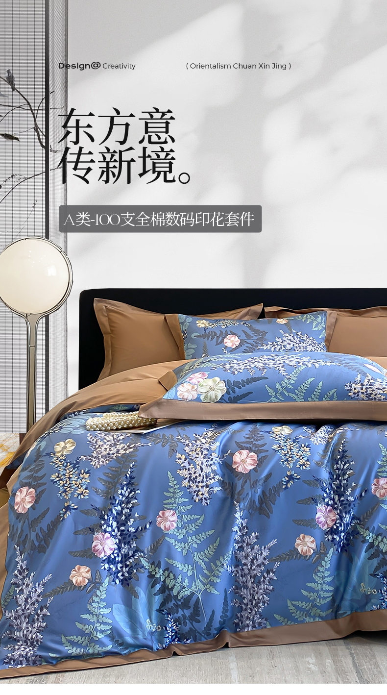 蓝米卡夫 2024新品-A类100支全棉活性数码拼角款-繁花系列 云梦花语