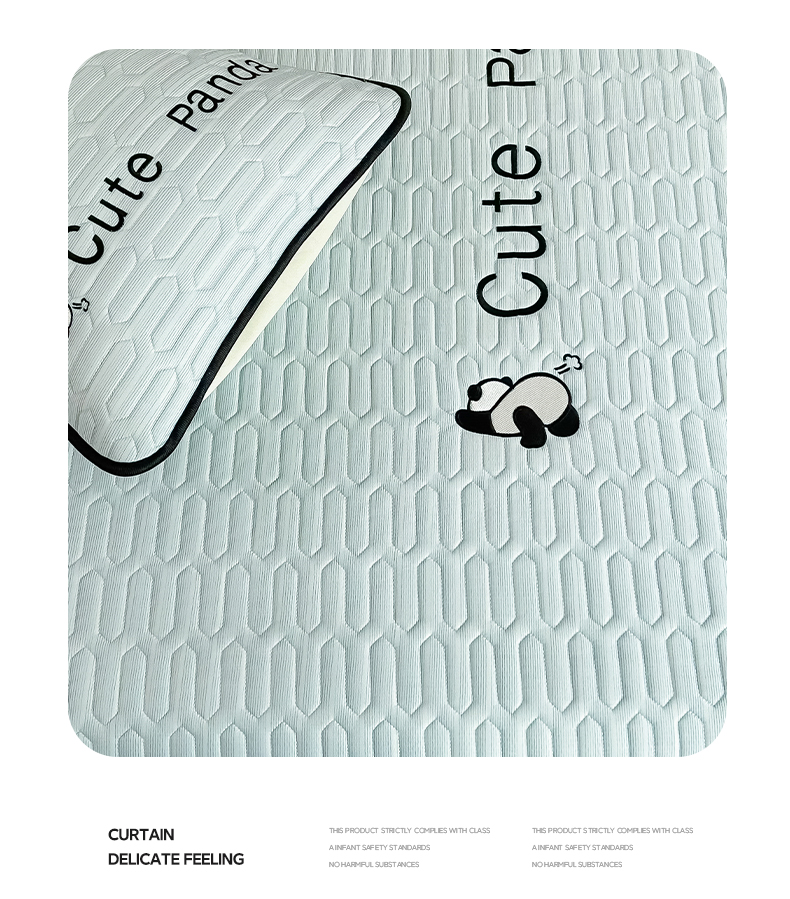 多乐家纺 2024新款居家风肌理纹凉感丝绣花乳胶席-平铺款 熊猫-天空蓝