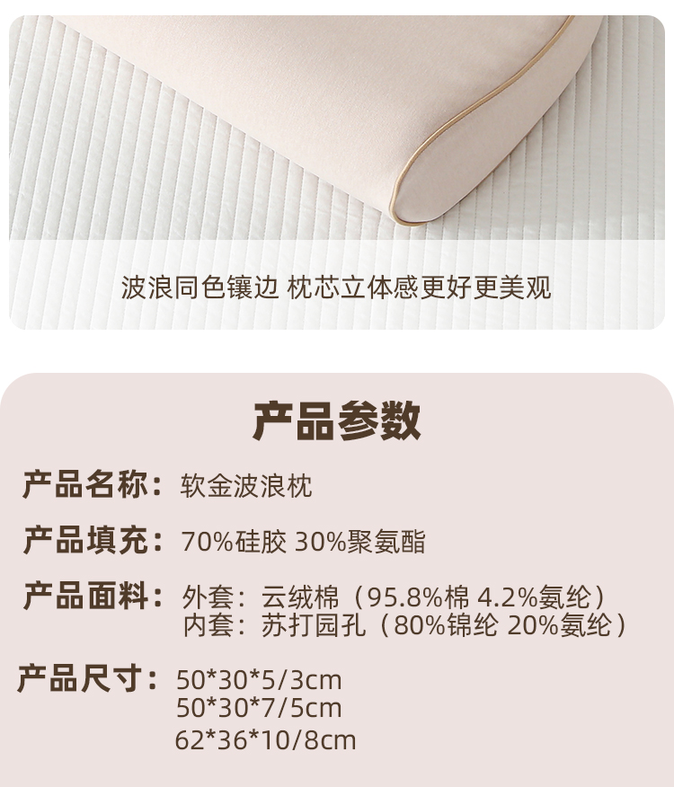 商品名称:(总)帛茗轩 2025新款软金波浪枕圆角婴童中童成人枕