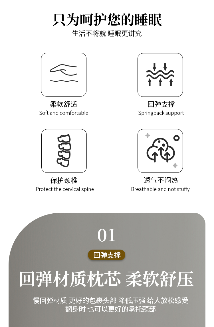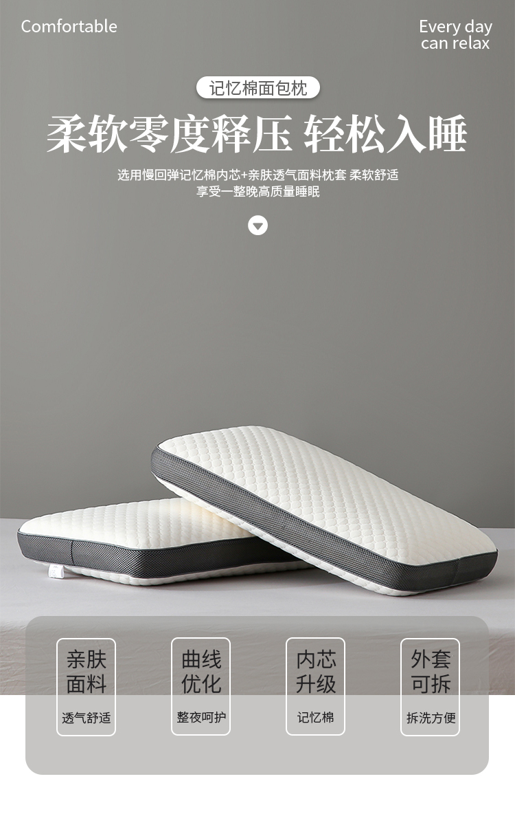 (总)帛茗轩家居 2026新款DIAO面包护颈枕 枕头枕芯,浅咖