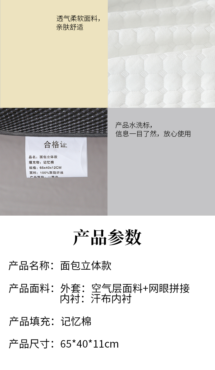 (总)帛茗轩家居 2026新款DIAO硅胶面包枕 枕头枕芯,浅咖