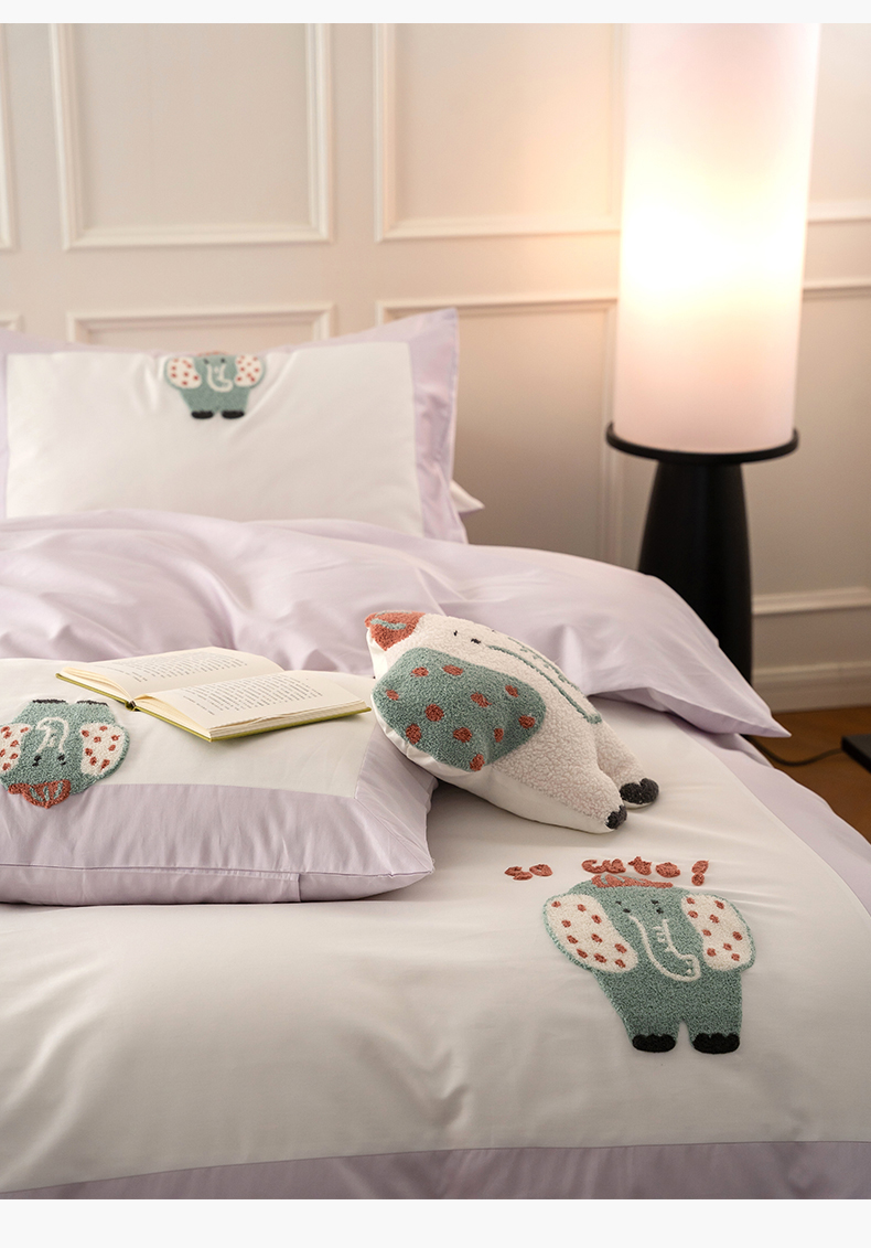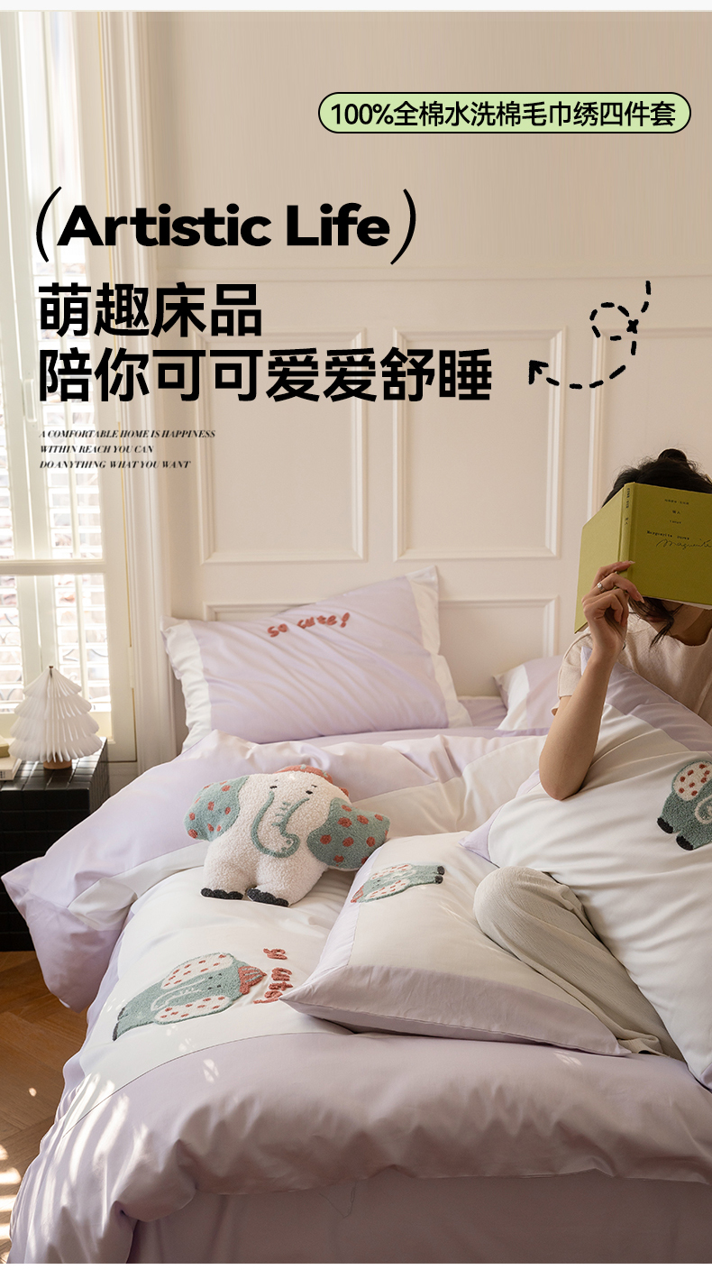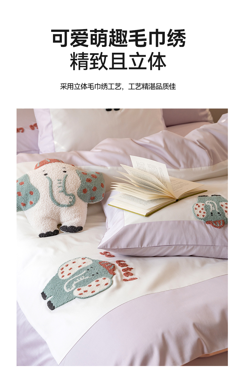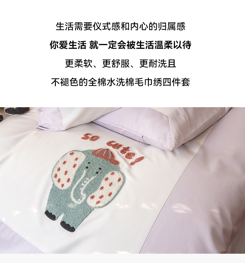 名品优仓 2023新款水洗棉毛巾绣撞边款式四件套-玫瑰熊 风信子-玲月白,风信子-玲月白