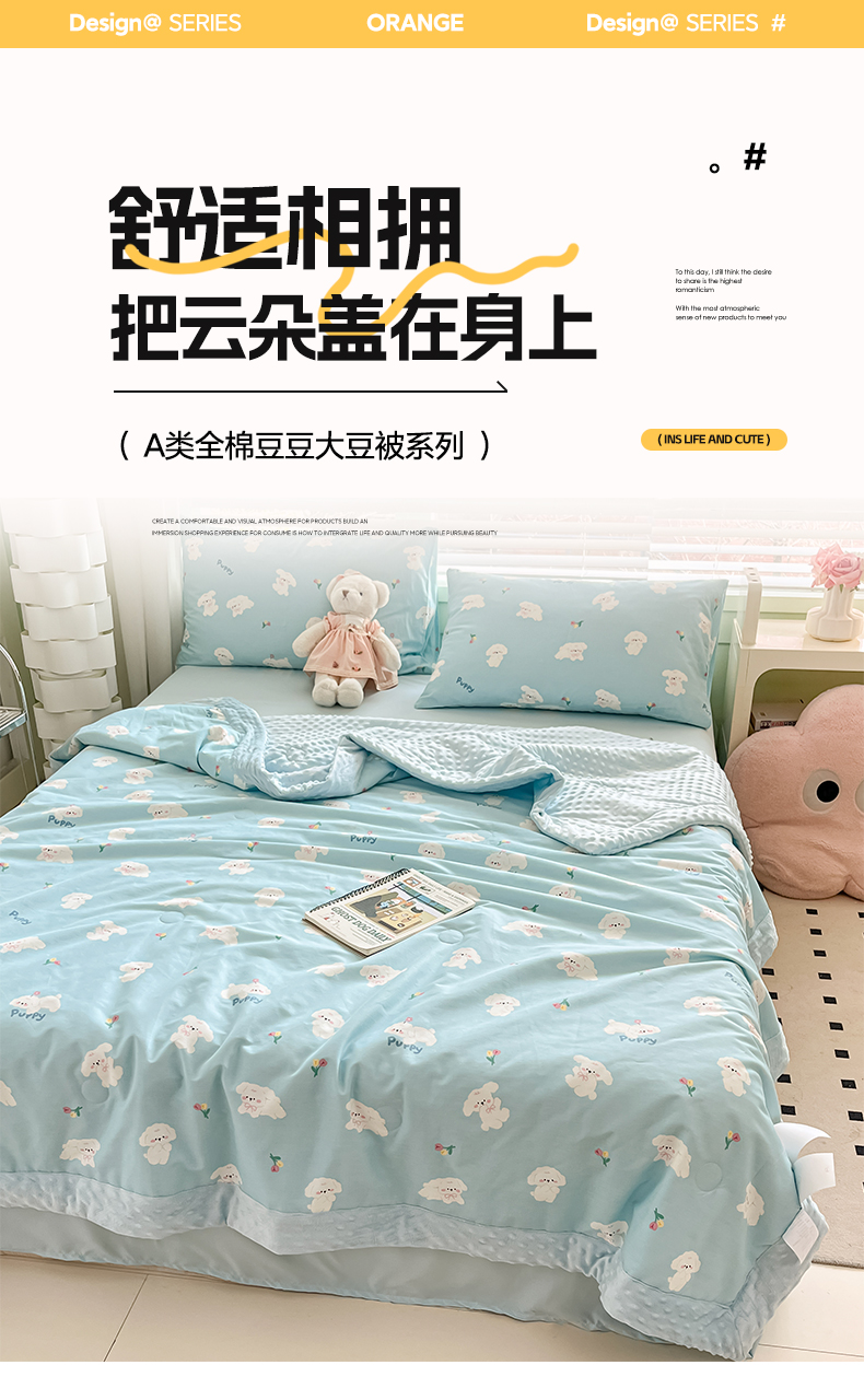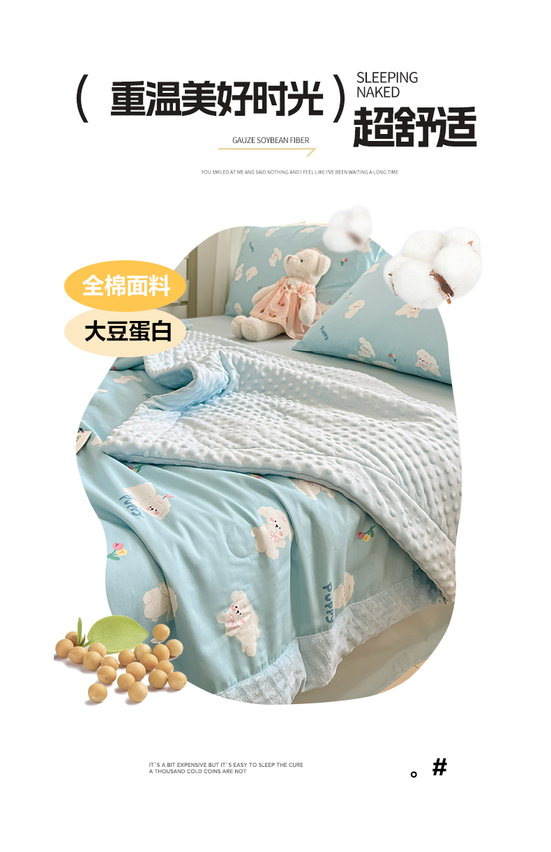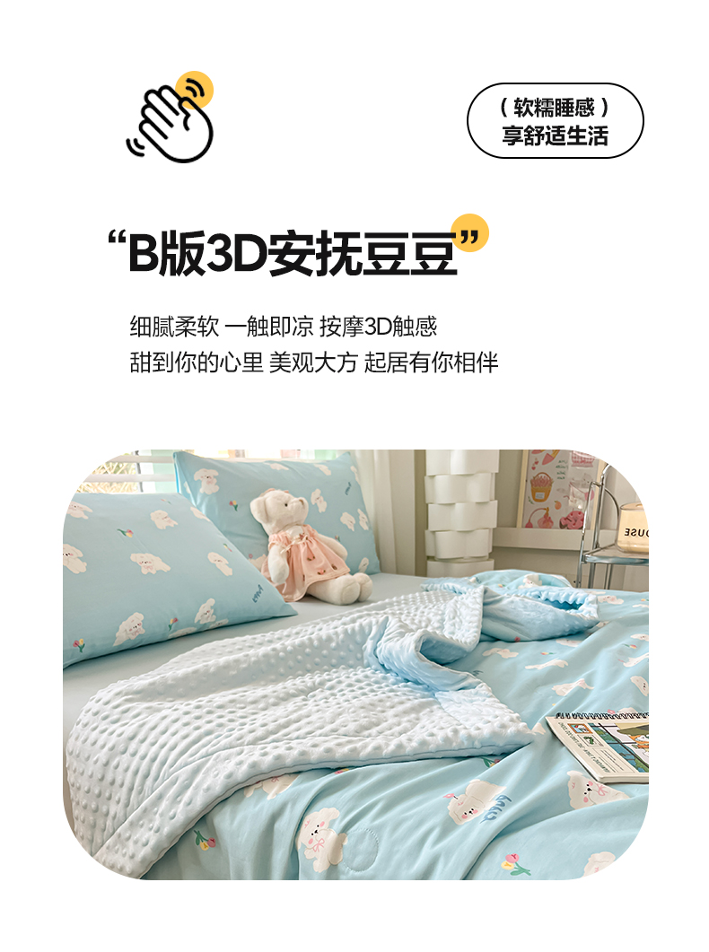 • 91家纺网 家纺一手货源 找家纺 一加一 2025新款全棉豆豆被 豆豆被-蓝色小兔