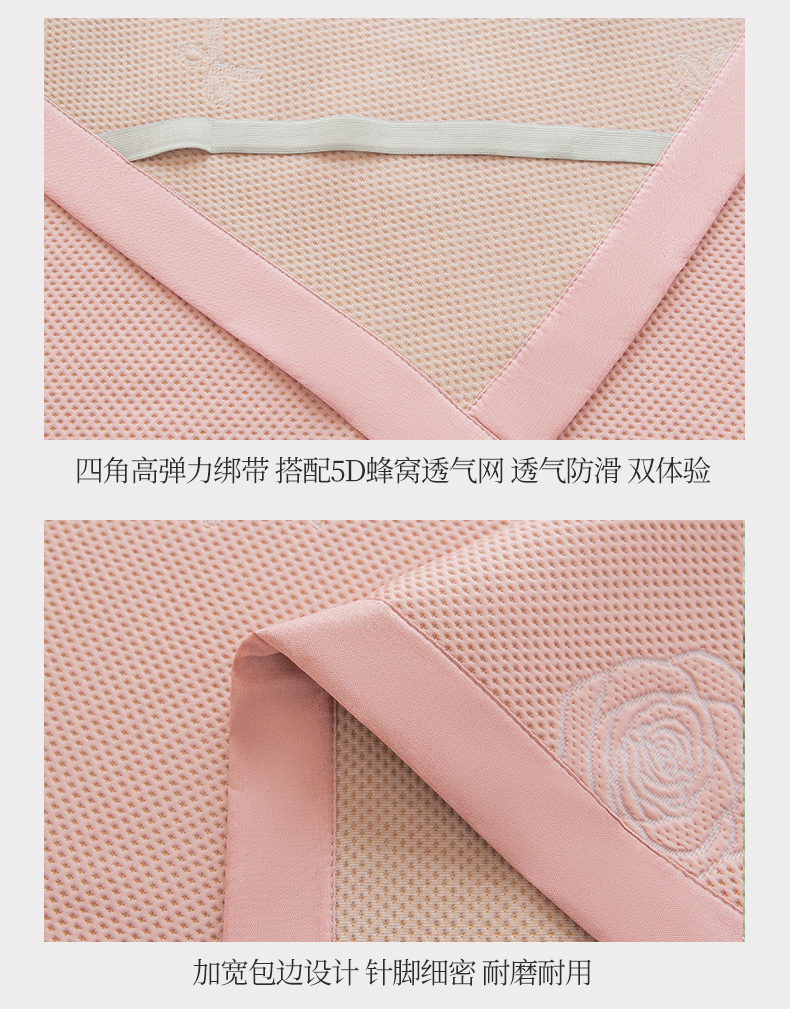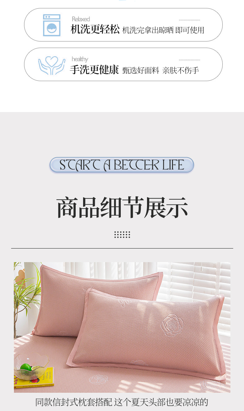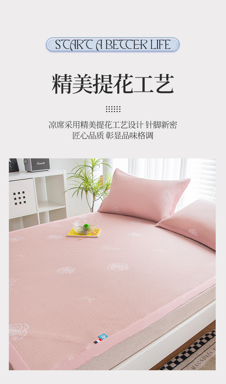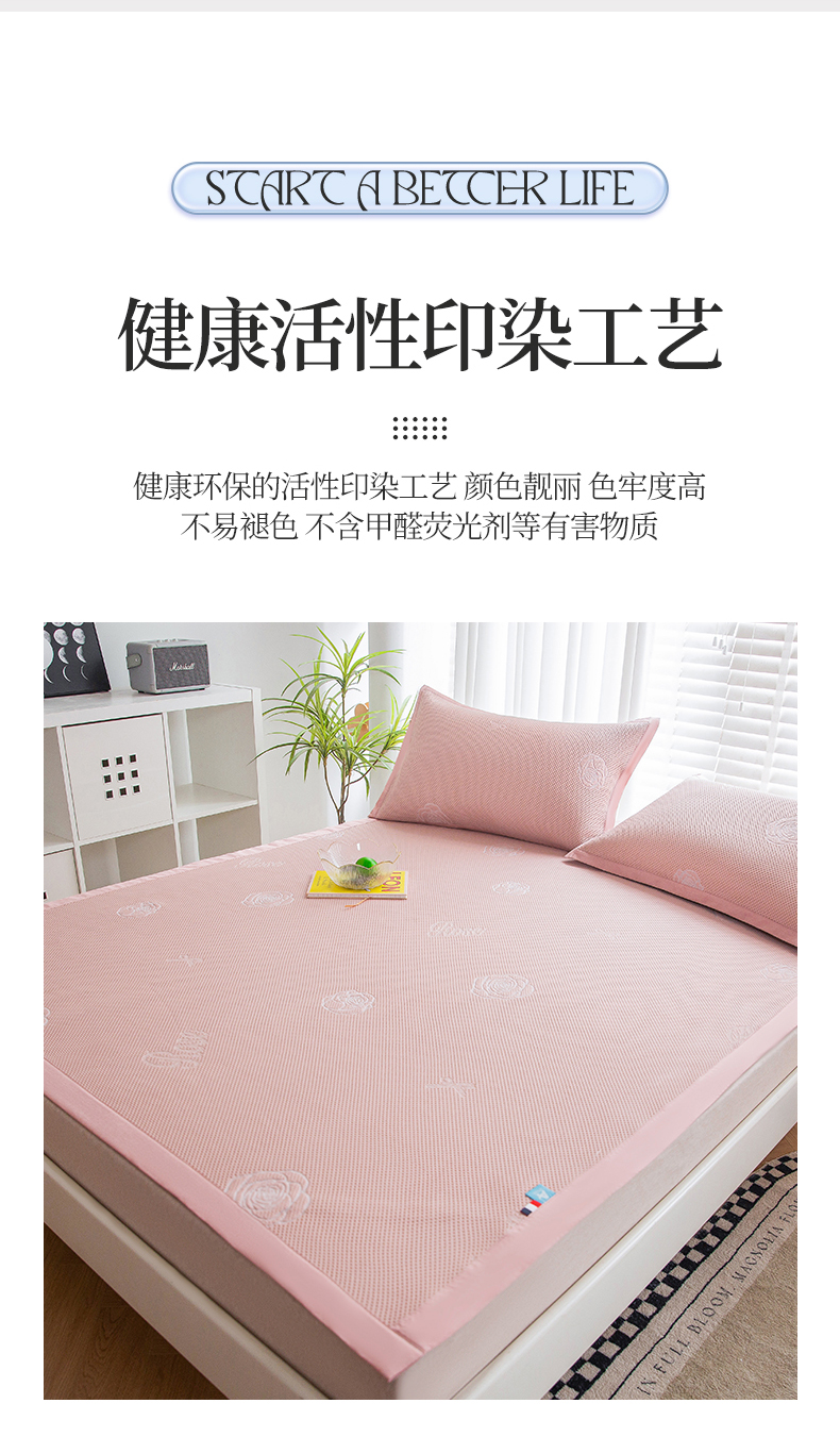 商品名称:宜派家纺 2024新款单面凉感席三件套-夏日玫瑰 夏日玫瑰-粉